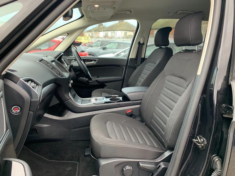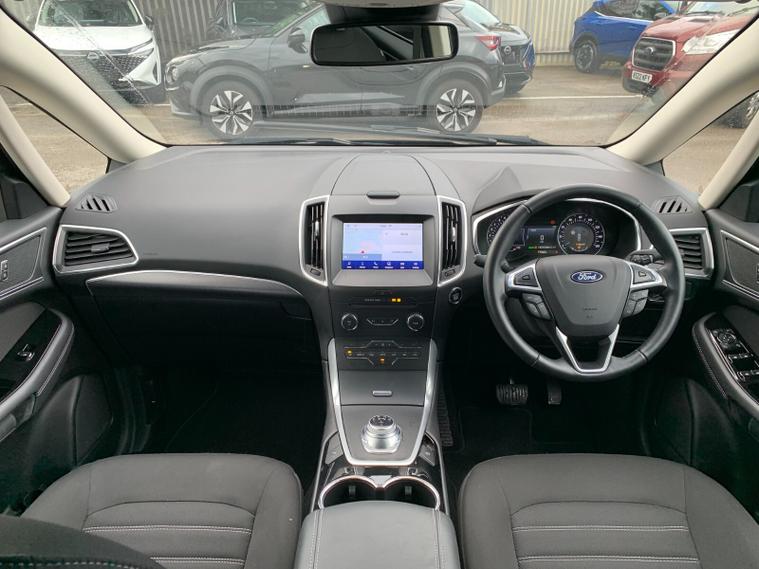 Inside, the Galaxy really comes into its own. The flexible seven-seat layout features individual, fold-flat second-row seats and a practical third row with easy entry, making it ideal for families who need space without compromise. Dual-zone climate control, ambient interior lighting and supportive front sports seats create a comfortable environment, while front and rear parking sensors, lane keeping aid, traffic sign recognition and pre-collision assist add reassurance on every journey. Features such as FordPass Connect, keyless entry, a heated Quickclear windscreen and power-folding mirrors make everyday driving effortless, while details like tray tables, multiple storage solutions and a 230V power outlet underline its practicality.