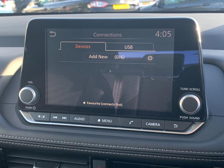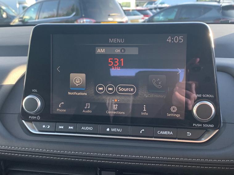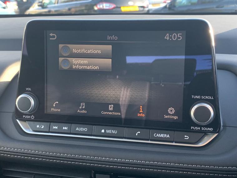 Inside, the cabin is spacious, versatile and well equipped. A full 12.3" digital driver display is paired with an intuitive 8" NissanConnect touchscreen, while features such as wireless charging, dual-zone climate control and a multifunction steering wheel make every journey comfortable and convenient. The flexible seating includes a 40/20/40 split second row and a folding third row, allowing you to adapt the space easily for passengers or luggage. Driver assistance systems such as blind spot warning, intelligent emergency braking, lane keep assist, front and rear parking sensors and a rear view camera help make driving and parking stress free, whether in town or on longer trips.