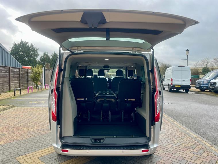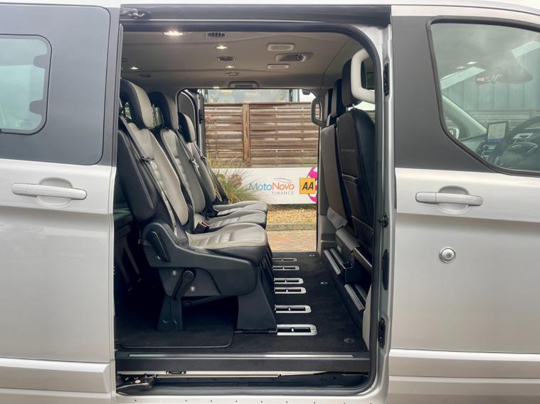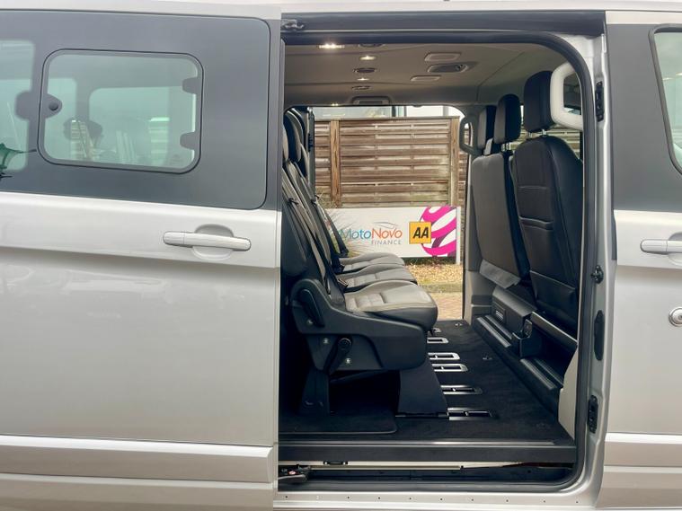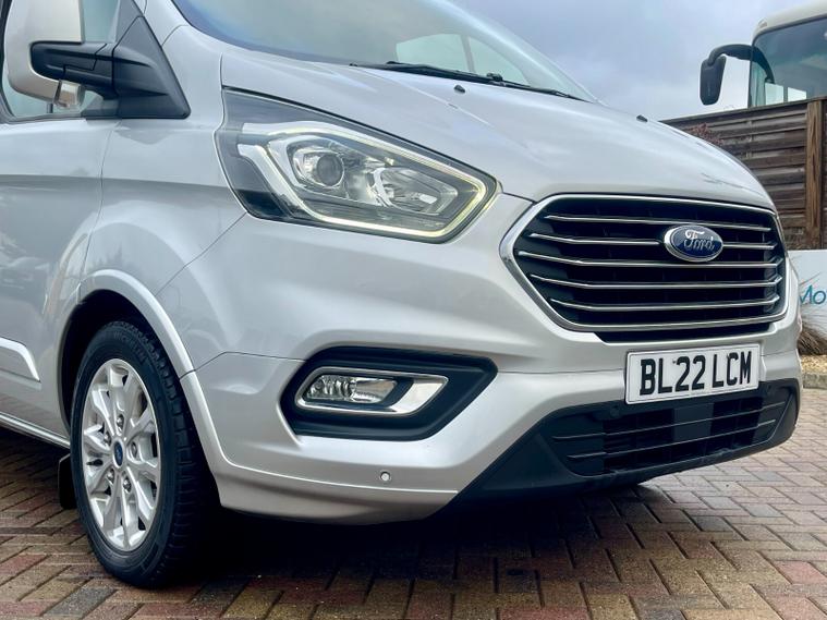 2022 (22 reg) Ford Tourneo Custom 2.0 TDCi 130 BHP L2 H1 Titanium EcoBlue 9-Seat Minibus, finished in Silver, offering a high level of comfort, space, and everyday usability. The L2 long wheelbase layout provides generous passenger room while remaining easy to drive, making it well suited to family use, executive transport, or professional passenger services.