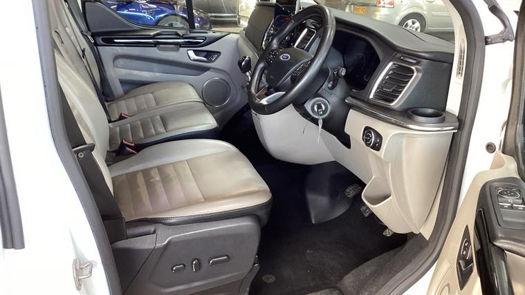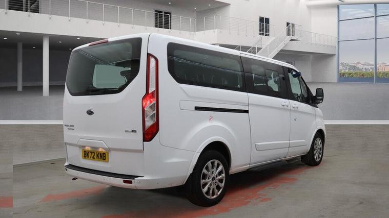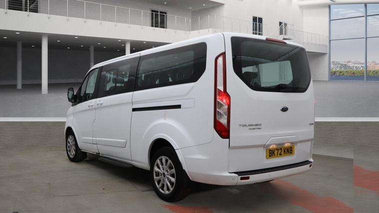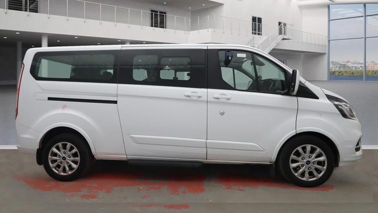 2022 72 reg Ford Tourneo Custom 320 2.0 Tdci 130 L2 H1 Titanium Ecoblue 9 Seats Minibus finished in Frozen White with spec to include alloy wheels, parking sensors, sat nav, air con, leather seats, heated seats, electric drivers seat, cruise control, bluetooth, auto headlights, front fog lights, electric mirrors & windows, dab, pas.