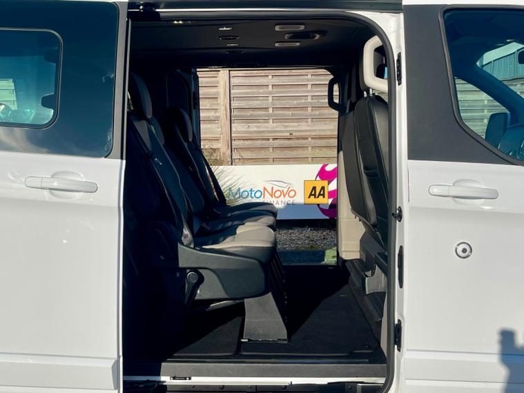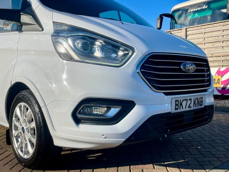 2022 (72 reg) Ford Tourneo Custom 320 2.0 TDCi 130 BHP L2 H1 Titanium EcoBlue 9-Seat Minibus, finished in Frozen White, offering an excellent balance of passenger comfort, space, and refined driving manners. The long wheelbase L2 H1 configuration provides generous interior room while remaining easy to drive, making it well suited to family use, executive transport, or professional passenger services.