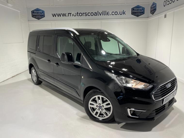 2020 69 Reg Ford Grand Tourneo Connect 1.5 TDCi EcoBlue (120PS) Automatic TITANIUM 5dr**7 seater**. Agate Black metallic with black cloth interior, 16 inch alloy wheels, PANORAMIC GLASS ROOF, DAB, HEATED FRONT SEATS, Bluetooth USB, CLIMATE CONTROL, AIR CONDITIONING, REAR PARKING SENSORS, PRIVACY GLASS, electric front and rear windows, heated front and rear screens, cruise control with speed limiter, roof rails, auto lights, rain sensing wipers, front driver and passenger, active city stop, side and curtain airbags, front fog lights, electrically operated heated and power folding door mirrors, tinted glass, ABS, ESP, 40, 832 miles (MW 69 YHE).