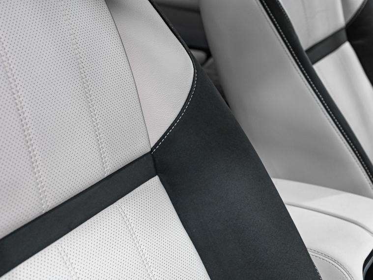 Finished in Fuji White with a contrasting Light Oyster and Ebony perforated leather and suede interior.