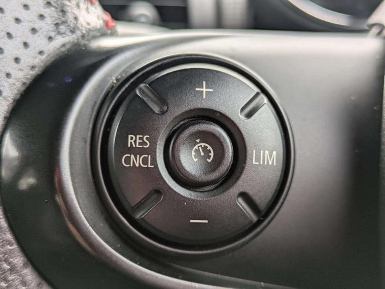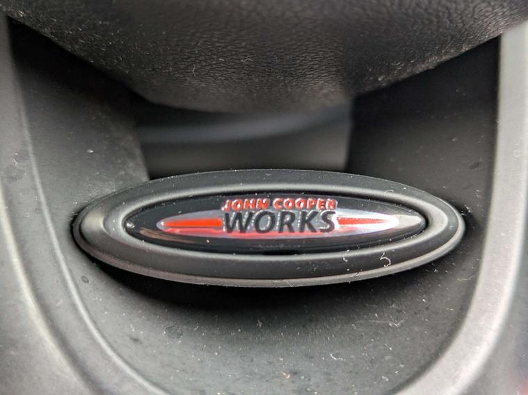 - John Cooper Works leather steering wheel with contrasting stitching in Chilli Red with John Cooper Works logo