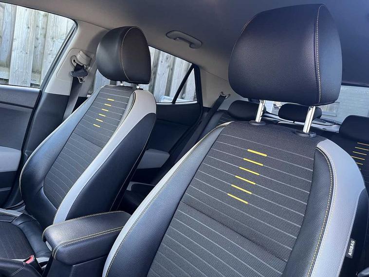 - Cloth/Faux Leather - Black/Grey with yellow inserts and grey door trim