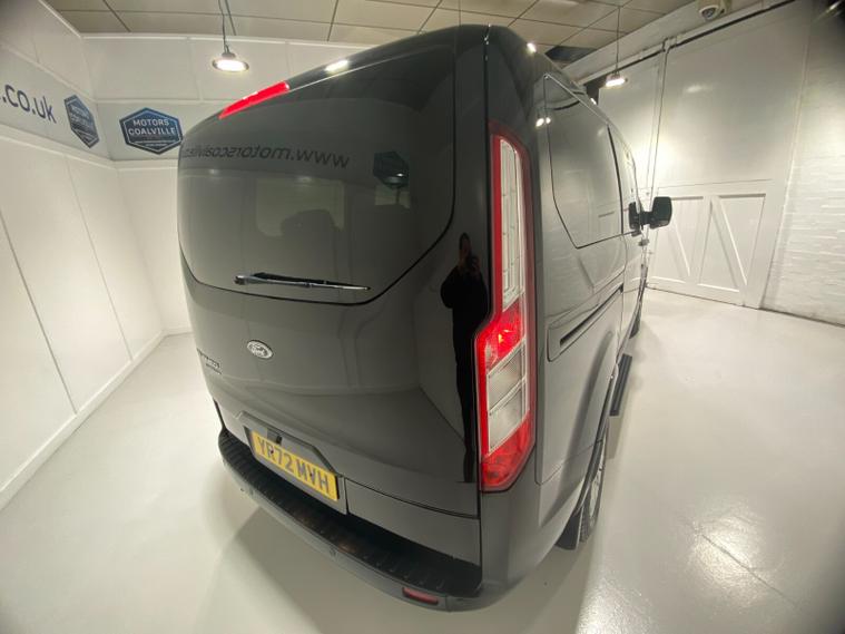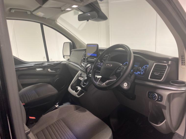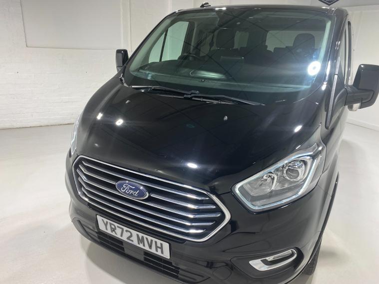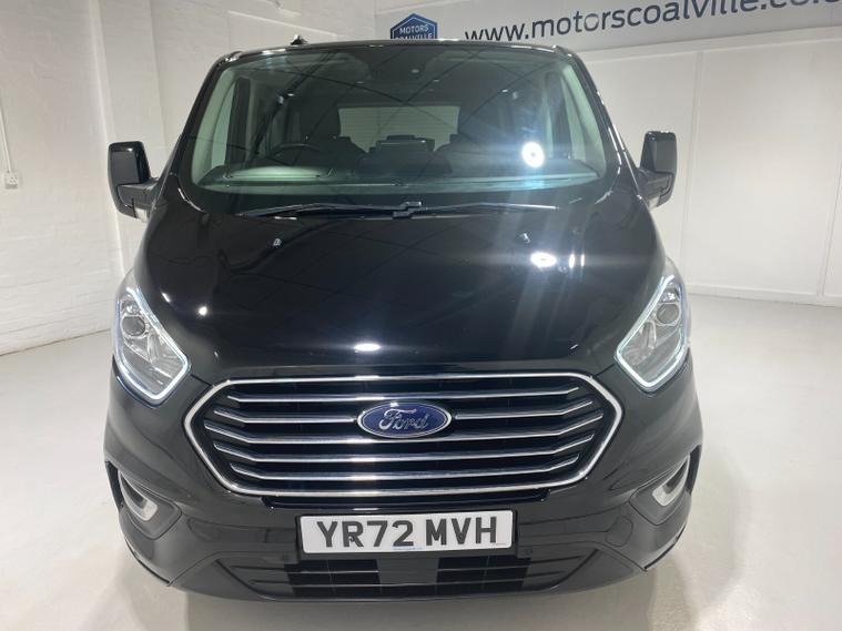 2022 72 Reg Ford Tourneo Custom 320 EcoBlue 2.0 TDCi (130PS) L1 TITANIUM SWB AUTOMATIC***8 SEATER***. Agate Black metallic with charcoal cloth interior, HEATED FRONT SEATS, ADAPTIVE CRUISE CONTROL, 16 inch alloy wheels, FRONT and REAR PARKING SENSORS, Ford SYNC 3 TOUCHSCREEN SATELLITE NAVIGATION with Apple CarPlay and Android Auto, Bluetooth USB, DAB, remote central locking, front electric windows, privacy glass, electrically operated, heated and power folding mirrors, auto lights and wipers, LED daytime running lights, front fog lights, quickclear heated front windscreen, 32, 150 miles (YR 72 MVH).
