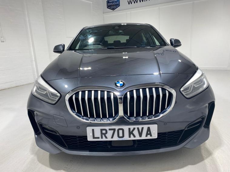 2020 70 Reg BMW 116d 1.5 (116PS) M SPORT AUTOMATIC 5dr. Mineral Grey metallic with black FULL LEATHER interior, TECH PACK 2 with LIVE COCKPIT PROFESSIONAL featuring TOUCHSCREEN SATELLITE NAVIGATION, DIGITAL INSTRUMENT CLUSTER and HARMAN/KARDON PREMIUM AUDIO, SUN PROTECTION GLAZING, 19 inch M ALLOY WHEELS, Apple CarPlay, LED front and rear lights, Cruise control, Electric Heated Folding Mirrors, Electric Front and Rear Windows, M Sport Steering Wheel, Aerodynamic Body Styling Kit and Sports Suspension, Dual Zone Climate Air Conditioning, Auto Lights and Wipers, Front and Rear Parking Sensors, Push Button Start, 23, 536 miles (LR 70 KVA).