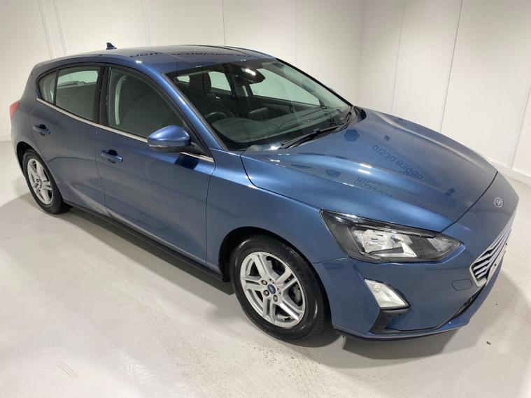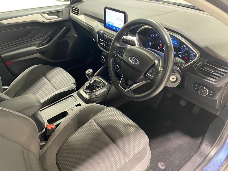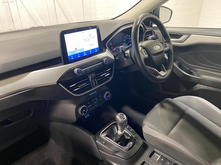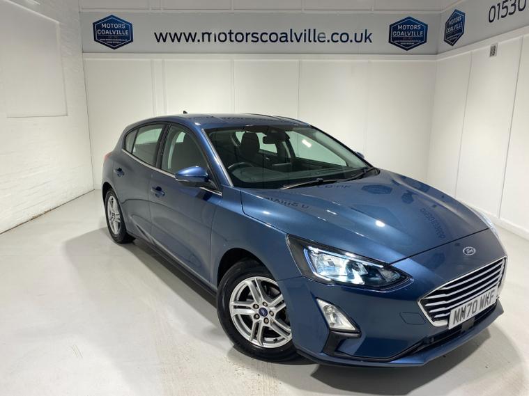2021 70 Reg Ford Focus 1.0 Turbo Ecoboost (125PS) 6 spd Zetec EDITION 5dr. Chrome Blue metallic with Ebony cloth interior, alloy wheels, SYNC3 TOUCHSCREEN SATELLITE NAVIGATION, DAB, Apple CarPlay, Android Auto, BLUETOOTH USB, FRONT and REAR PARKING SENSORS, AIR CONDITIONING, remote central locking, electrically operated and heated door mirrors, electric front and rear windows, trip computer, ESP, front fog lights, quickclear front screen, Thatcham Cat 1 alarm, 13, 806 miles (MM 70 WKF).
