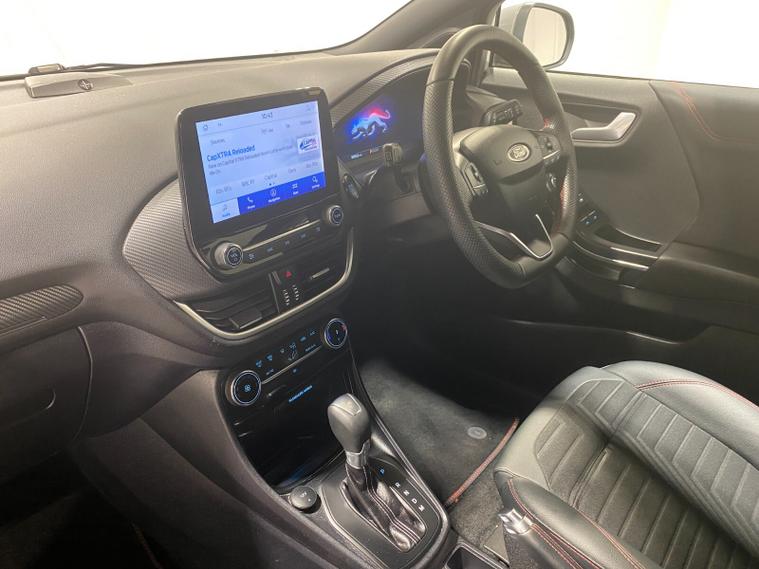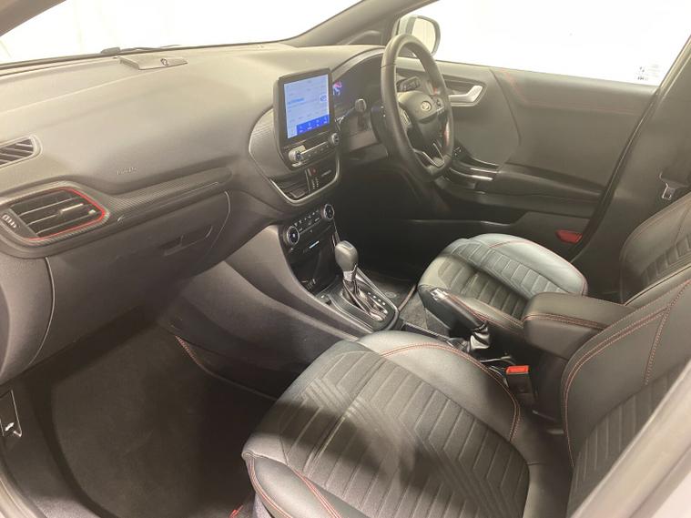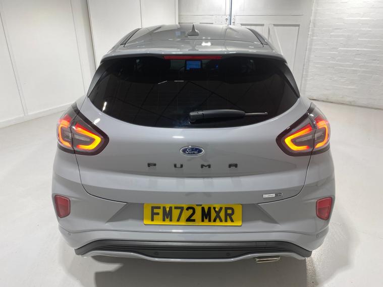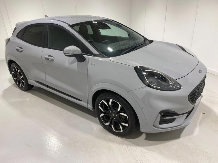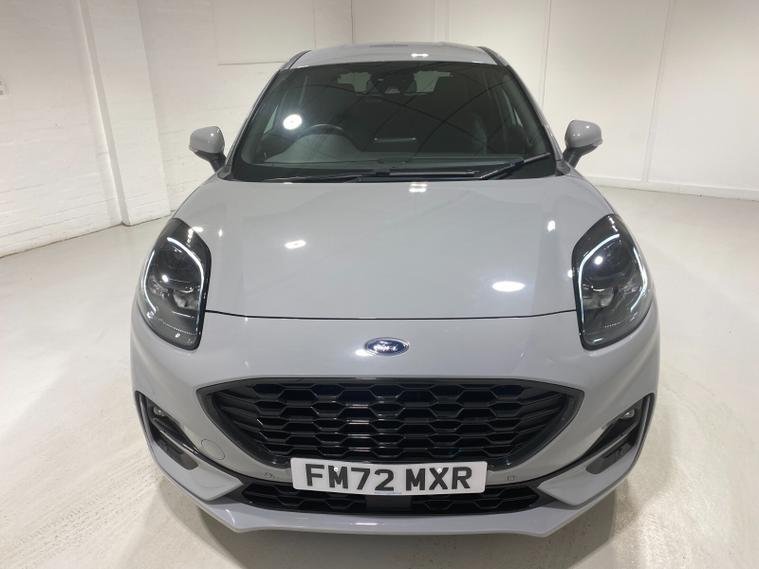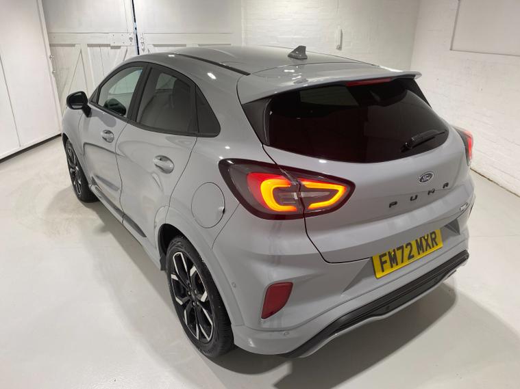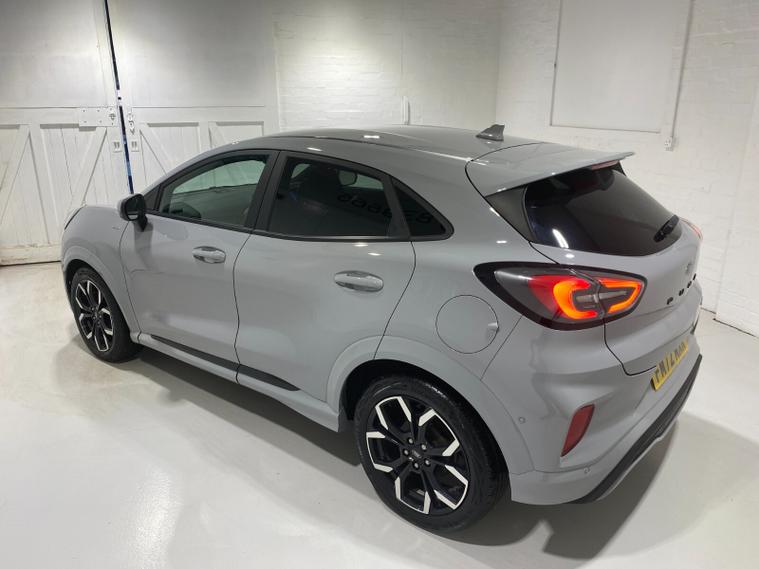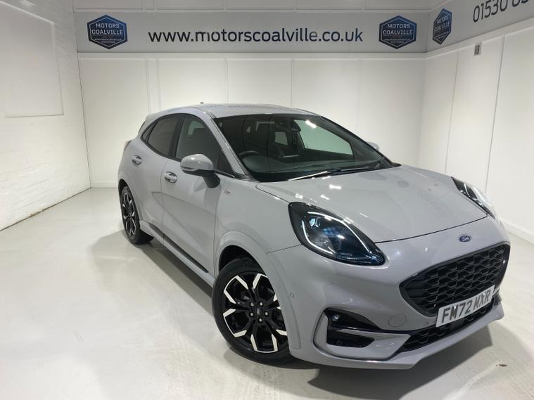 2023 72 Reg Ford Puma 1.0 EcoBoost mHEV (125PS) Automatic ST Line X 5dr. Grey Matter with Part Sensico interior, ST -LINE BODY KIT with LARGE REAR SPOILER, SYNC 3 DAB SATELLITE NAVIGATION, PARKING PACK with ACTIVE PARK ASSIST and REAR CAMERA, HANDSFREE POWER TAILGATE, B&O sound system, selectable drive modes- Normal, Eco, Sport, Slippery & Trail, drivers & passenger seat lumbar & heights adjust, FORD MEGABOX EXTENDED BOOT SPACE, 18 inch Matt Black machined alloy wheels, EATC AIR CON, KEYLESS entry and start with FORD power start button, PRIVACY GLASS, power folding door mirrors, Drivers Assistance features to include auto lights and rain sensing wipers, centre console with arm rest, tyre pressure monitoring system, Thatcham alarm, NCAP Pack (lane-keeping alert & lane-keeping aid, speed limiter, rear seat belt minder, rear centre head restraint & auto-headlamps), front fog lamps with cornering lights, heated front screen, remote central locking, electric front windows, ESP, Hill start assist, trip computer, ambient lighting, 9, 065 miles (FM 72 MXR).