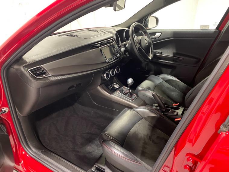 2020 70 Reg Alfa Romeo Giulietta 1.4 TB (120PS) 6 spd SPRINT 5dr. Alfa Red with Black ALCANTARA sports interior, UCONNECT TOUCHSCREEN, 18 inch Black Dark Miron alloy wheels, DAB, Bluetooth USB, auto lights, rain sensing wipers, privacy glass, cruise control, DUAL ZONE CLIMATE CONTROL AIR CON, front and rear electric windows, electrically operated, heated and power folding door mirrors, tinted glass, front fog lights, 11, 313 miles (GL 70 BXY).