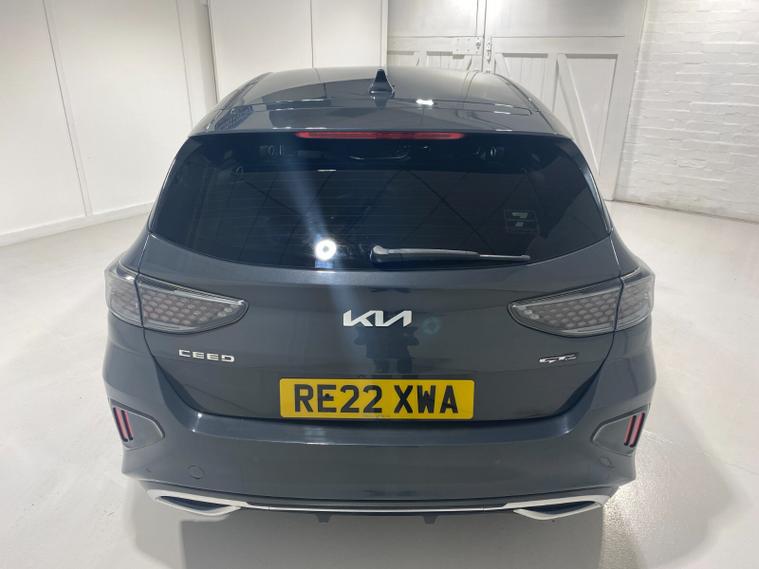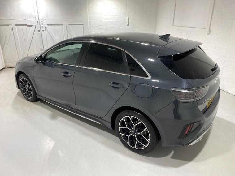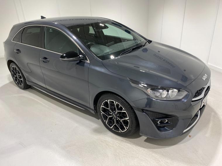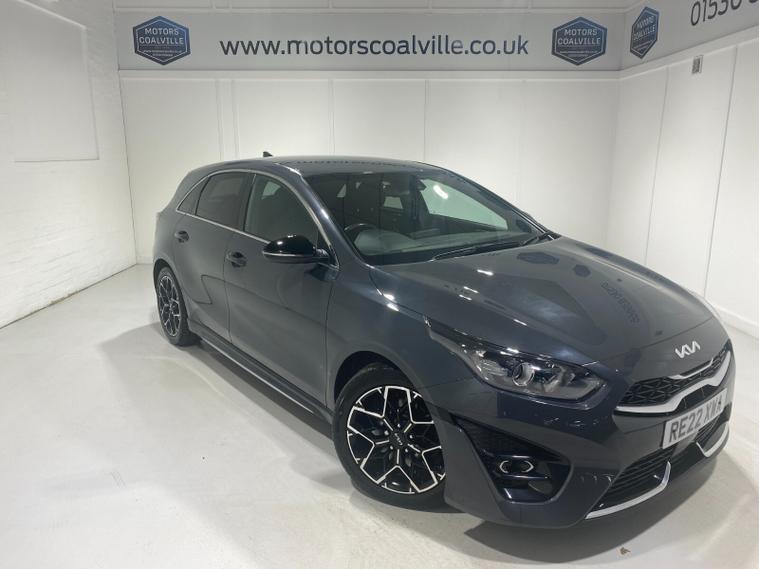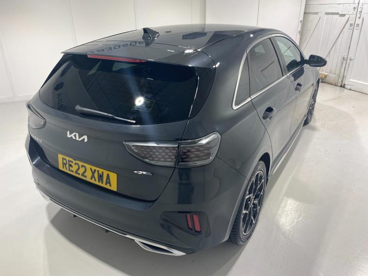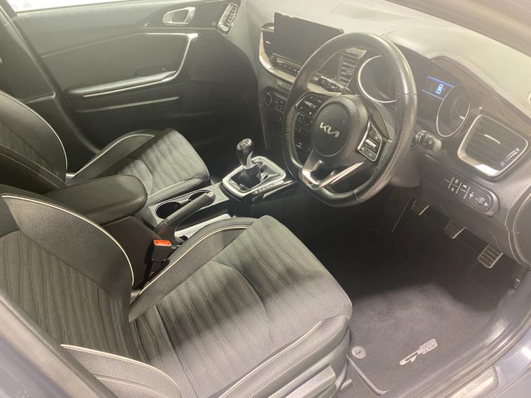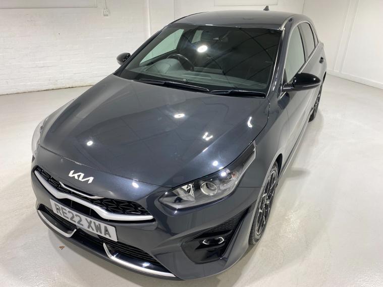 2022 22 Reg Kia Ceed 1.5 T-GDi (158PS) GT-LINE 6spd Manual 5dr. Dark Penta metallic with black cloth interior, 17 inch alloy wheels, HEATED FRONT SEATS and STEERING WHEEL, REAR CAMERA, REAR PARKING SENSORS, TOUCHSCREEN SATELLITE NAVIGATION, Bluetooth USB, Apple CarPlay, Android Auto, auto lights, rain sensing wipers, privacy glass, dual zone climate control air conditioning, lane departure warning, cruise control, keyless entry and push button start, remote central locking, electrically operated, heated and power mirrors, front and rear electric windows, ABS, 40, 443 miles (RE 22 XWA).