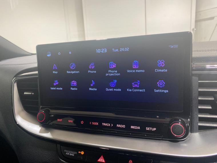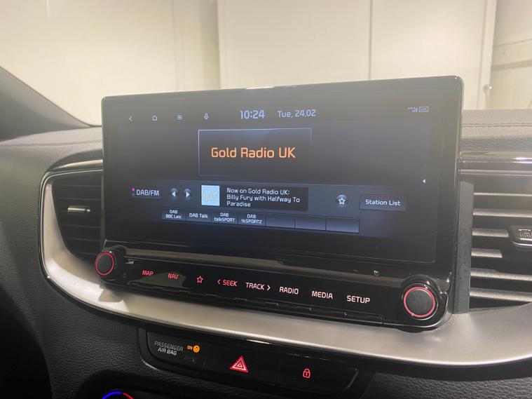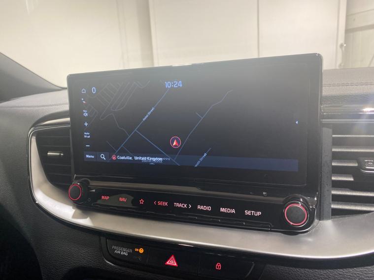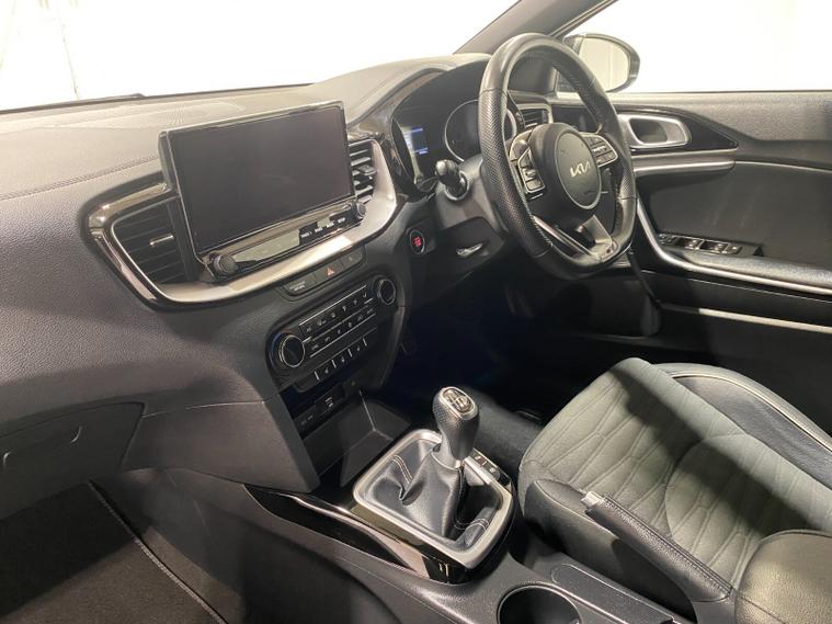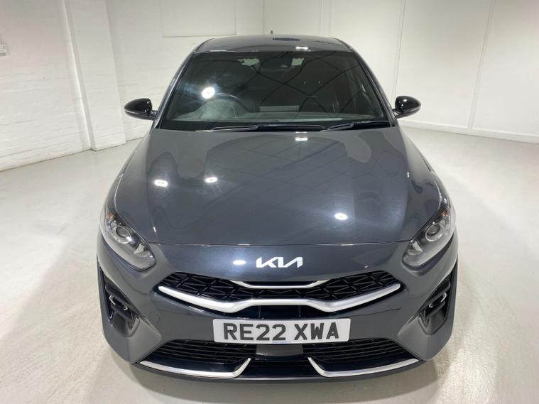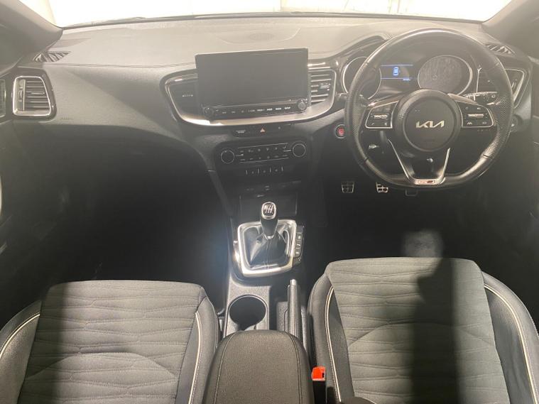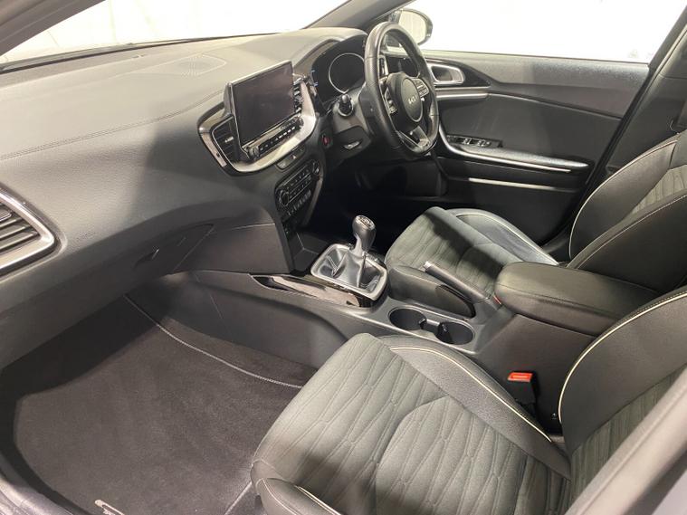 2022 22 Reg Kia Ceed 1.5 T-GDi (158PS) GT-LINE 6spd Manual 5dr. Dark Penta metallic with black cloth interior, 17 inch alloy wheels, HEATED FRONT SEATS and STEERING WHEEL, REAR CAMERA, REAR PARKING SENSORS, TOUCHSCREEN SATELLITE NAVIGATION, Bluetooth USB, Apple CarPlay, Android Auto, auto lights, rain sensing wipers, privacy glass, dual zone climate control air conditioning, lane departure warning, cruise control, keyless entry and push button start, remote central locking, electrically operated, heated and power mirrors, front and rear electric windows, ABS, 40, 443 miles (RE 22 XWA).