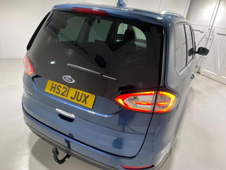 2021 21 Reg Ford Galaxy 2.0 TDCi (150PS) TITANIUM AUTOMATIC **LUX PACK and DRIVER ASSISTANCE PACK** 5dr. Chrome Blue metallic with Ebony FULL LEATHER interior, SELF LEVELLING SUSPENSION, DETACHABLE TOW BAR, LUX PACK with ADAPTIVE LED HEADLIGHTS, FULL LEATHER SEATS, HEATED FRONT SEATS, 10 WAY POWER FRONT SEATS with DRIVER MEMORY and ELECTRIC OPENING TAILGATE, DRIVERS ASSISTANCE PACK to include SONY TOUCHSCREEN SYNC 3 DAB and NAVIGATION SYSTEM, ACTIVE PARK ASSIST with PARALLEL and PERPENDICULAR PARKING and FRONT and REAR PARKING SENSORS, ADAPTIVE CRUISE CONTROL, FRONT WIDE VIEW and REAR VIEW CAMERAS, BliS (Blind Spot Information System), Bluetooth and voice control, KEYLESS ENTRY, FRONT and REAR PARKING SENSORS, Electric handbrake, Lane Keeping Aid, Traffic Sign recognition, power start button, Dual Zone ATC AIR CONDITIONING, power easy fold flat 3 row seats, cruise control with speed limiter, PRIVACY glass, auto wipers and lights, IPS system, ESP, Tyre Pressure monitor system, power front and rear windows with global closing, quickclear heated windscreen, remote locking, Thatcham alarm, ABS, 42, 403 miles (HS 21 JUX).