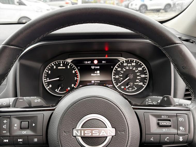 Inside, the cabin is modern, comfortable and thoughtfully designed around everyday usability. The NissanConnect 8 inch touchscreen infotainment system keeps everything easily within reach, offering seamless smartphone integration through Apple CarPlay and Android Auto, Bluetooth streaming and DAB radio so you can stay connected and entertained wherever you travel. A clear 7 inch TFT driver display provides key information at a glance, while dual zone climate control helps keep everyone comfortable on every journey.