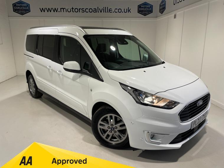 2022 22 Reg Ford Grand Tourneo Connect 1.5 TDCi EcoBlue (120PS) Automatic TITANIUM 5dr**7 seater**. Frozen White with black cloth interior, 16 inch alloy wheels, ADVANCED AUTOMATED PARKING SYSTEM featuring FRONT and REAR PARKING SENSORS, PARALELL and PERPENDICULAR AUTOMATED PARKING and PARK OUT ASSIST, PANORAMIC GLASS ROOF, DAB, HEATED FRONT SEATS, Bluetooth USB, CLIMATE CONTROL, AIR CONDITIONING, REAR PARKING SENSORS, PRIVACY GLASS, electric front and rear windows, heated front and rear screens, cruise control with speed limiter, roof rails, auto lights, rain sensing wipers, front driver and passenger, active city stop, side and curtain airbags, front fog lights, electrically operated heated and power folding door mirrors, tinted glass, ABS, ESP, 22, 198 miles (PL 22 ZXC).