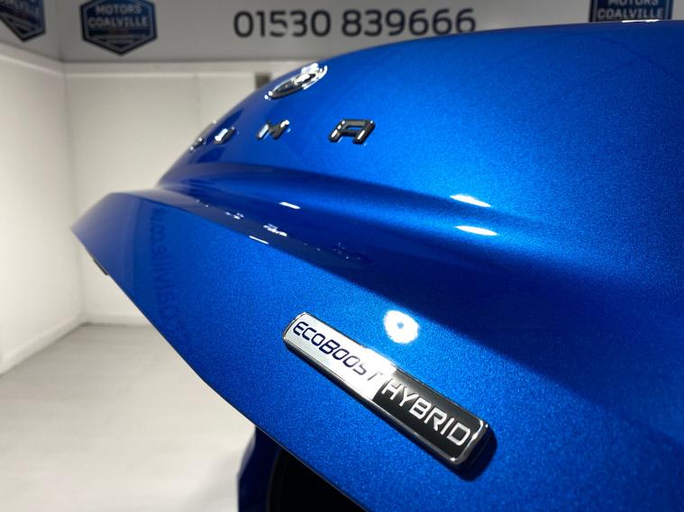 2023 23 Reg Ford Puma 1.0 EcoBoost mHEV (155PS) 6 spd TITANIUM 5dr. Desert Island Blue metallic with Charcoal cloth interior, SYNC3 TOUCHSCREEN DAB SATELLITE NAVIGATION, Bluetooth USB, Apple CarPlay, Android Auto, front seat massage function, lumbar & heights adjust, FORD MEGABOX EXTENDED BOOT SPACE, REAR parking sensors, 17 inch alloy wheels, AIR CON, FORD power start button, Drivers Assistance features to include traffic sign recognition, auto high beam & driver alert, centre console with arm rest, tyre pressure monitoring system, Thatcham alarm, NCAP Pack (lane-keeping alert & lane-keeping aid, speed limiter, rear seat belt minder, rear centre head restraint & auto-headlamps), front fog lamps with cornering lights, heated front screen, remote central locking, electric front windows, ESP, Hill start assist, trip computer, ambient lighting, 8, 575 miles (CY 23 FHJ).