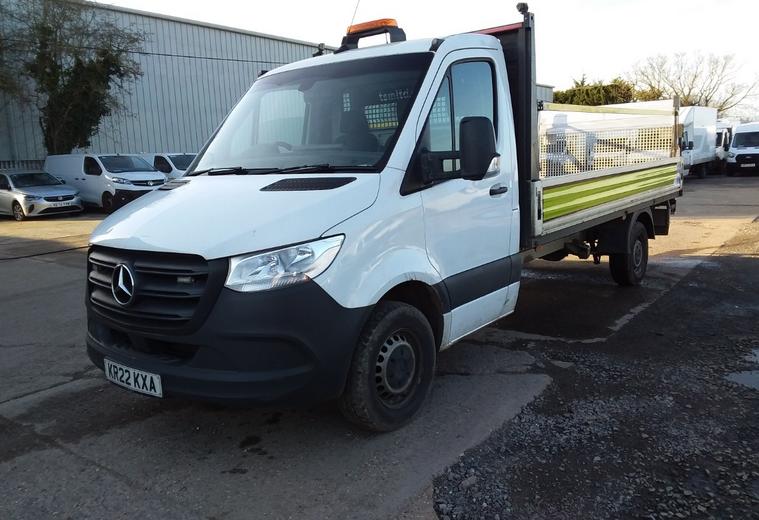 2022 22 reg Mercedes Sprinter 315 2.0 Cdi 150 bhp L3 Progressive Single Cab Alloy Dropside finished in Arctic White with spec to include tail lft, multi function steering wheel, cruise control, bluetooth, tow bar, auto headlights, electric windows, dab, pas.