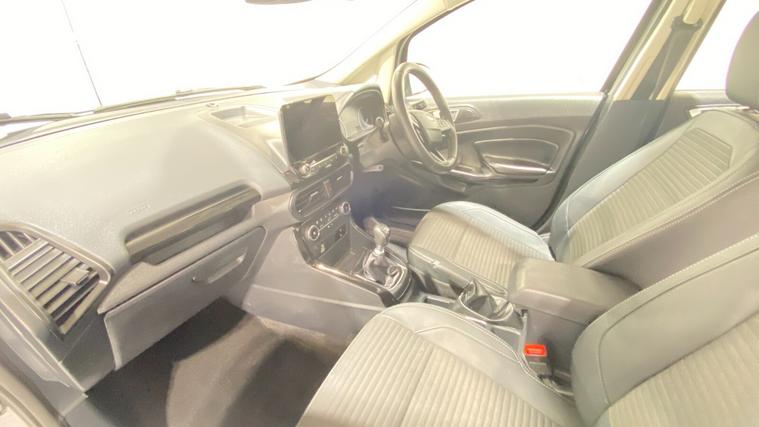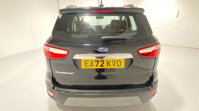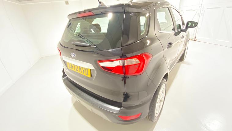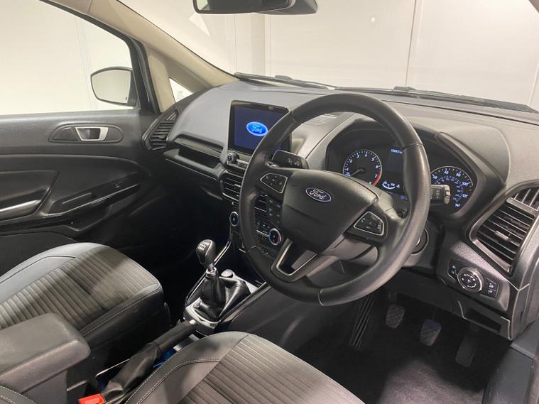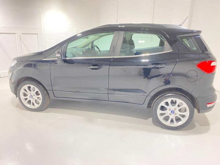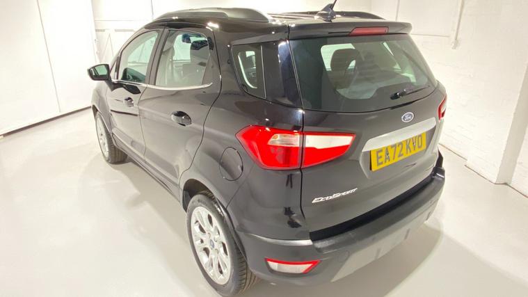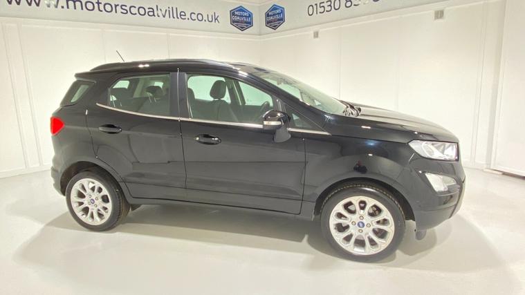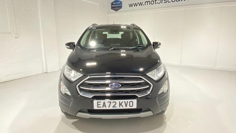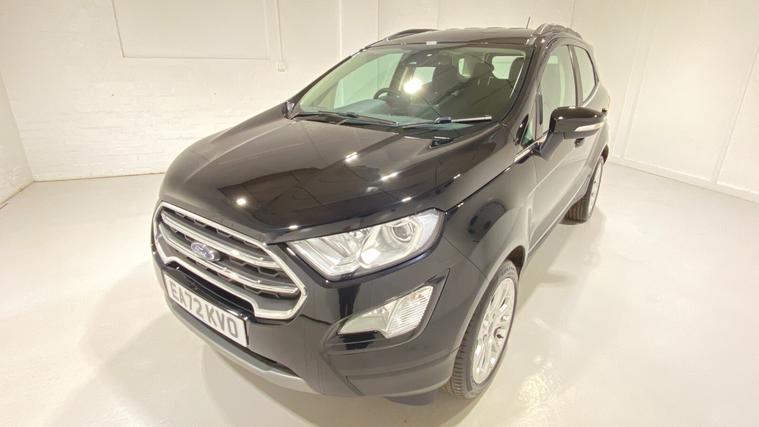 2022 72 Reg EcoSport 1.0 Turbo Ecoboost (125PS) 6 spd TITANIUM 5dr. Agate Black metallic with Ebony part LEATHER interior, WINTER PACK with HEATED FORNT SEATS and HEATED STEERING WHEEL, Silver roof rails, SYNC 3 DAB SATELLITE NAVIGATION with 8 inch touch screen with REAR VIEW CAMERA, REAR PARK ASSIST, 17 inch alloy wheels, tyre pressure monitoring system, Thatcham alarm, front fog lamps with cornering lights, heated front screen, remote central locking, electric front windows, ESP, Hill start assist, trip computer, ambient lighting, 16, 940 miles (EA 72 KVO).