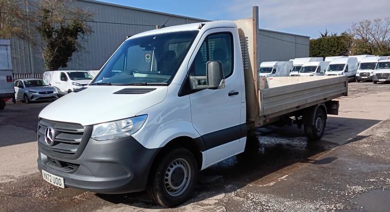 2022 72 reg Mercedes Sprinter 315 2.0 Cdi 150 bhp L3 Progressive Single Cab Alloy Dropside finished in Arctic White with spec to include multi function steering wheel, cruise control, bluetooth, auto headlights, electric windows, dab, pas.