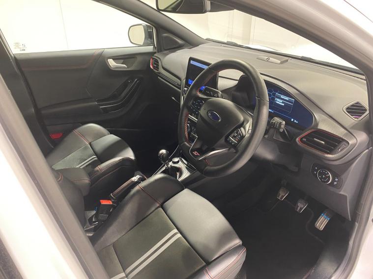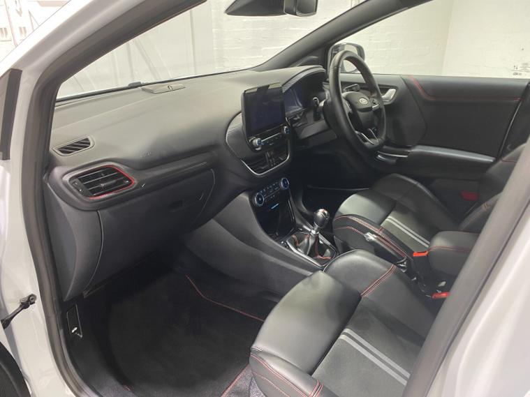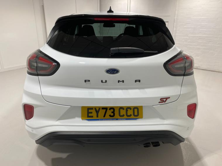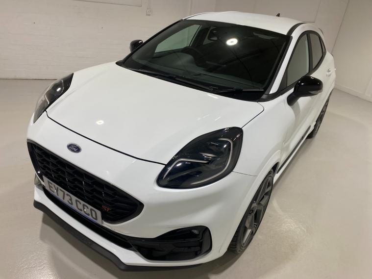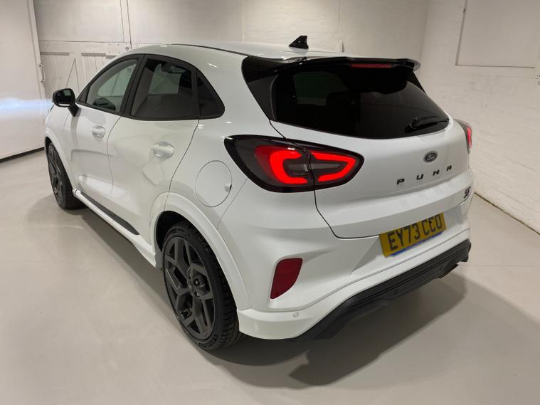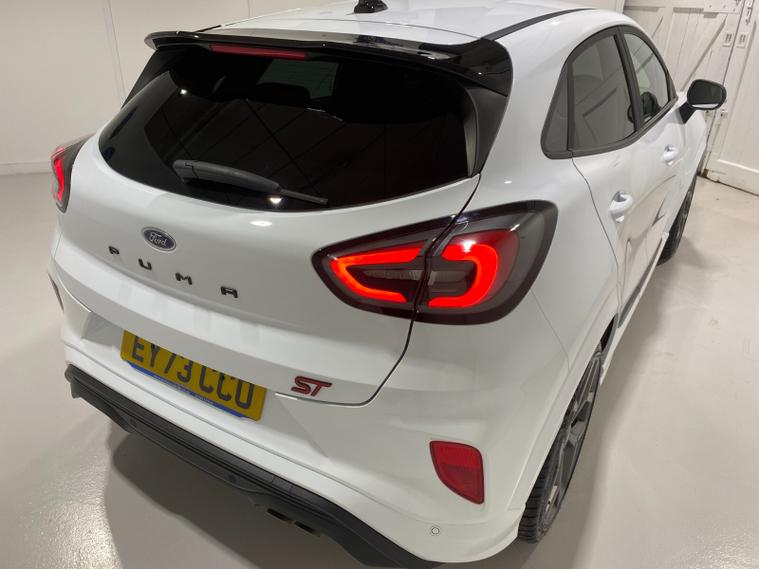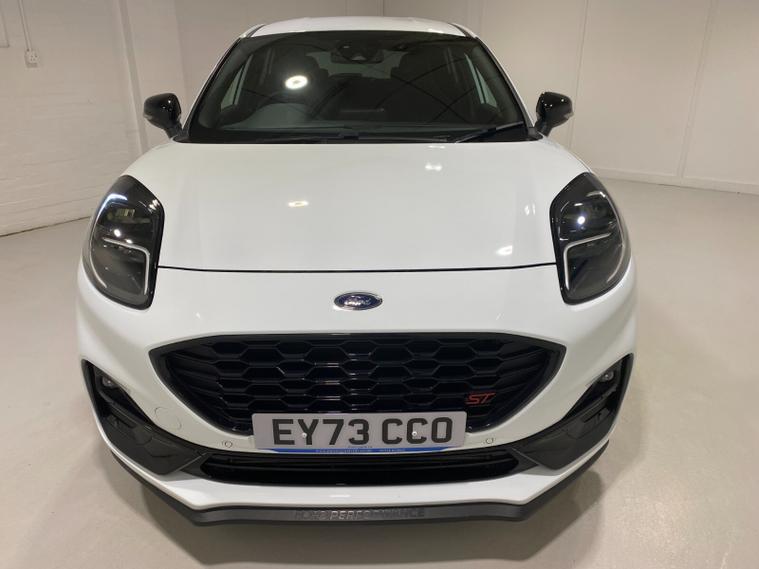 2023 73 Reg Puma 1.5 Turbo Ecoboost (200PS) 6 spd ST 5dr**Performance Pack**. Frozen White with Ford Performance half leather interior, heated front seats, heated steering wheel, PERFORMANCE PACK with LAUNCH CONTROL, QUAIFE Limited Slip Differential and Shift Light, SYNC3 DAB TOUCHSCREEN NAVIGATION, B&O PLAY with 360 degree sound system, Apple CarPlay and Android Auto, WIRELESS CHARGE PAD, FRONT & REAR PARKING SENSORS, Bluetooth USB, PRIVACY GLASS, 19 inch ST alloys, red brake calipers, cruise control with speed limiter, FORD KEYFREE SYSTEM with KEYLESS ENTRY & Ford power start button, traffic sign recognition, auto high beam, electrically operated, heated and power folding door mirrors, auto lights, auto wipers, heated front screen, 12, 167 miles (EY 73 CCO).