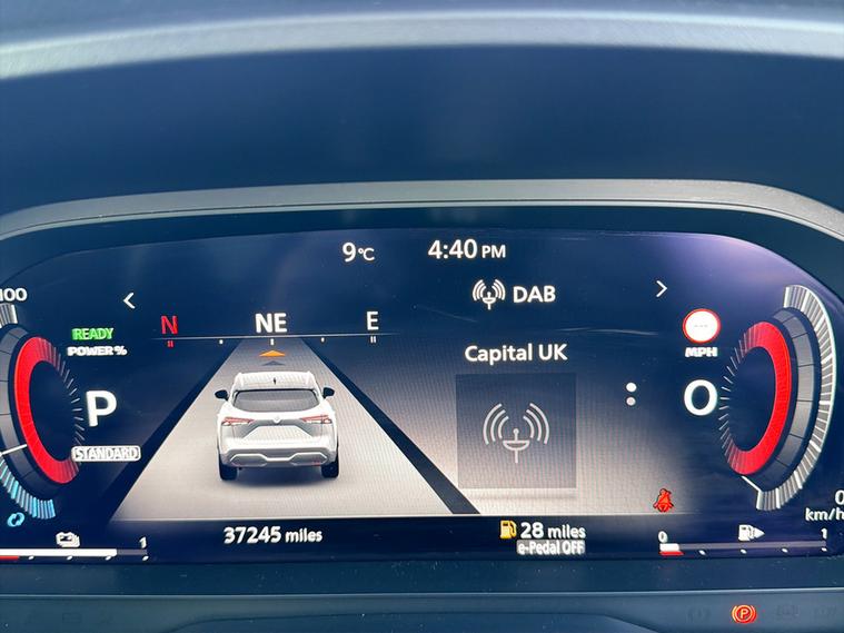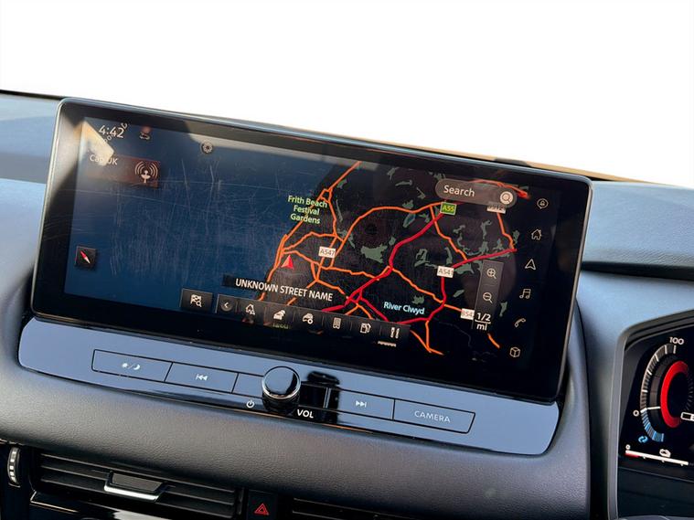 Inside, the cabin is modern and welcoming, designed to keep both driver and passengers comfortable on every journey. The impressive 12.3 inch NissanConnect touchscreen with integrated navigation sits alongside a fully digital 12.3 inch driver display, giving the interior a high tech feel while keeping key information easy to access. Wireless Apple CarPlay and Android Auto ensure seamless smartphone connectivity, while dual zone climate control and ambient lighting help create a relaxed and comfortable environment.