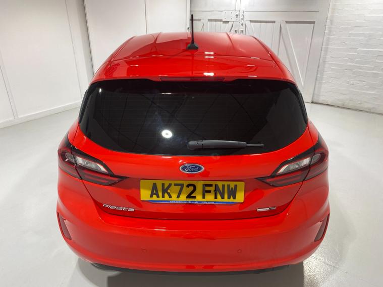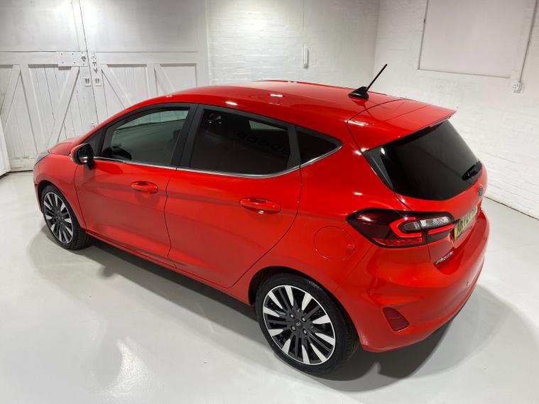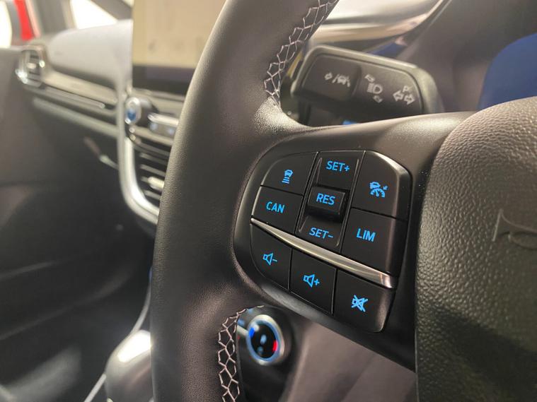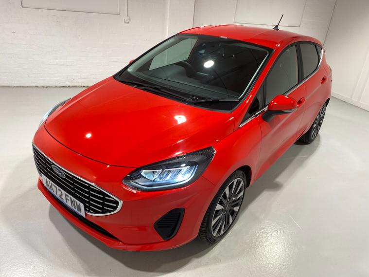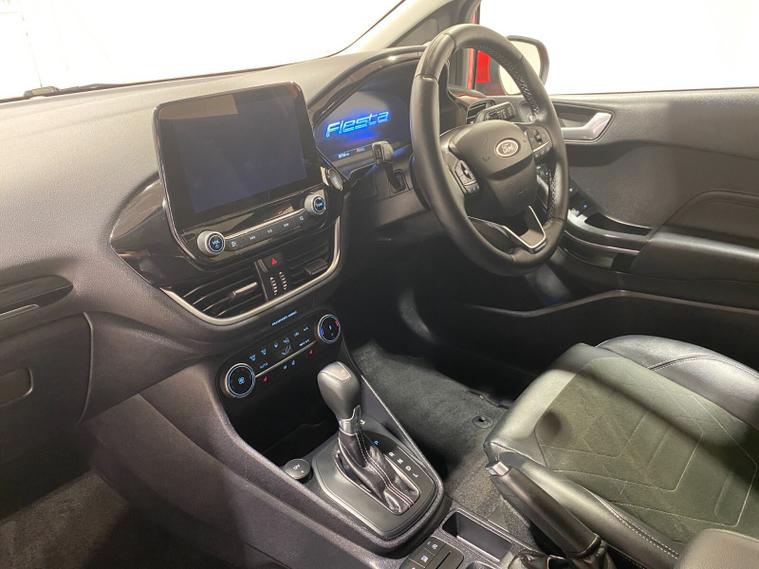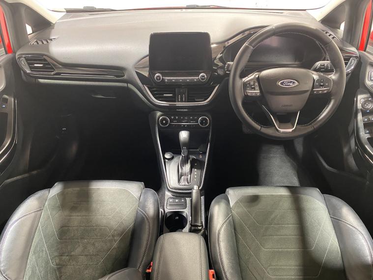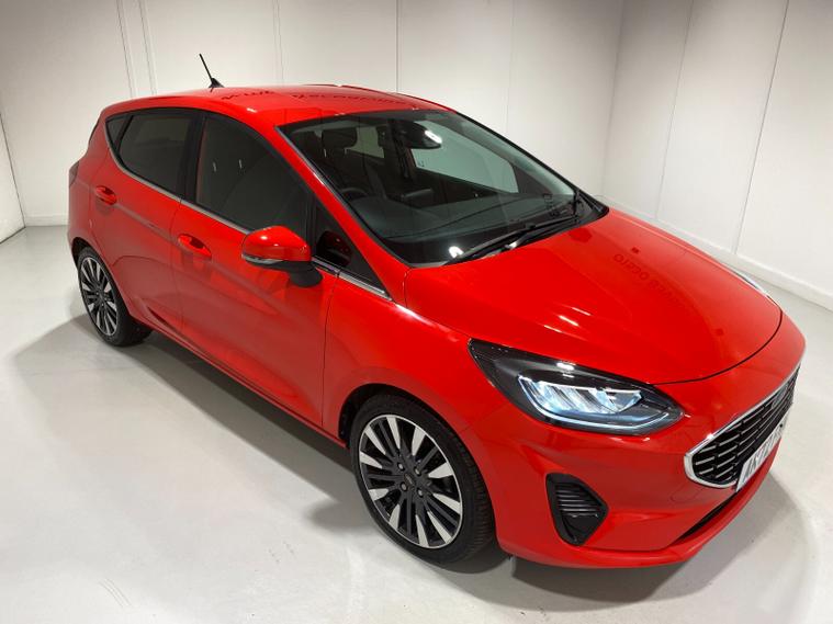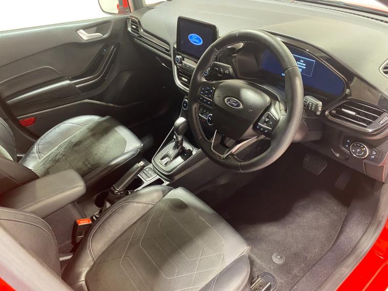 2022 72 Reg Fiesta 1.0 EcoBoost MHEV (125PS) Automatic TITANIUM X 5dr. Race Red with Ebony part LEATHER interior, DRIVER ASSISTANCE PACK with Adaptive Cruise Control with Traffic Sign Recognition (with Stop & Go for automatics), Intelligent Speed Assist (ISA), Driver’s impairment monitor, Autonomous Emergency Braking (AEB), SYNC 3 DAB SATELLITE NAVIGATION with 8 inch touch screen, 17” alloys, HEATED FRONT SEATS and STEERING WHEEL, REAR PARKING SENSORS with REAR VIEW CAMERA, EATC AIR CON, LED night signature rear lights, PRIVACY GLASS, KEYLESS entry and start with FORD power start button, auto light and rain sensing wipers, centre console with arm rest, tyre pressure monitoring system, Thatcham alarm, NCAP Pack (lane-keeping alert & lane-keeping aid, speed limiter, rear seat belt minder, rear centre head restraint & auto-headlamps), front fog lamps with cornering lights, heated front screen, remote central locking, electric front and rear windows, ESP, Hill start assist, trip computer, ambient lighting, 15, 709 miles (AK 72 FNW).