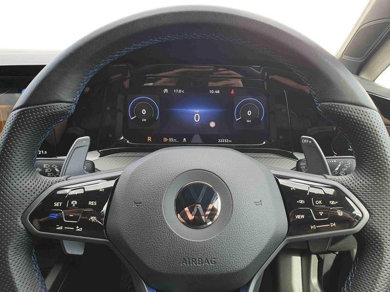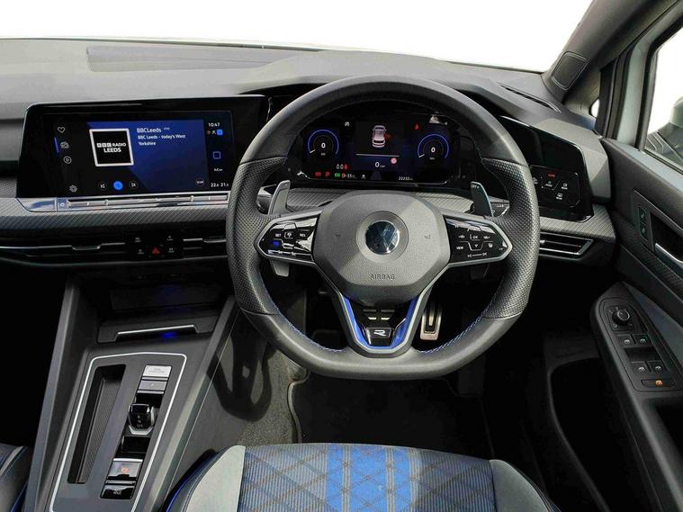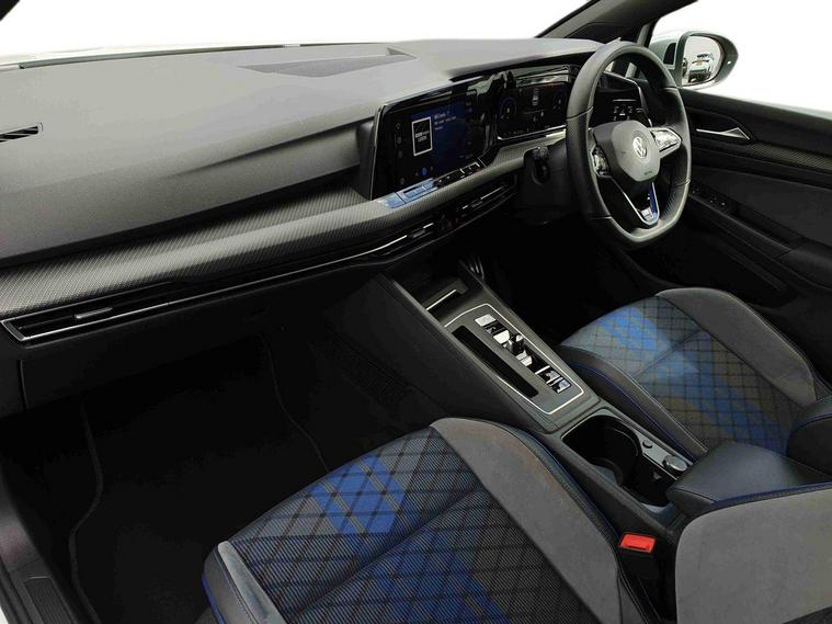 Inside, the Golf R blends sporty styling with premium quality. Expect R‑branded sports seats, a fully digital cockpit, large touchscreen infotainment system, Apple CarPlay/Android Auto, ambient lighting, and advanced driver‑assistance features. The cabin feels modern, refined, and purposefully designed for the driving enthusiast.