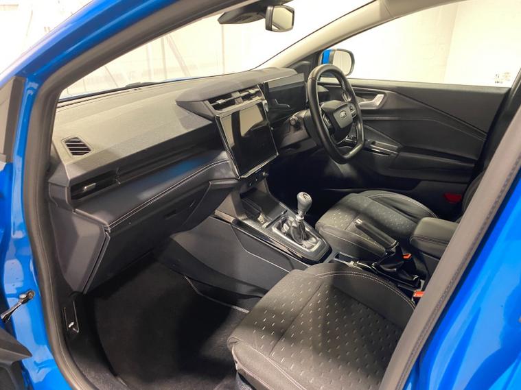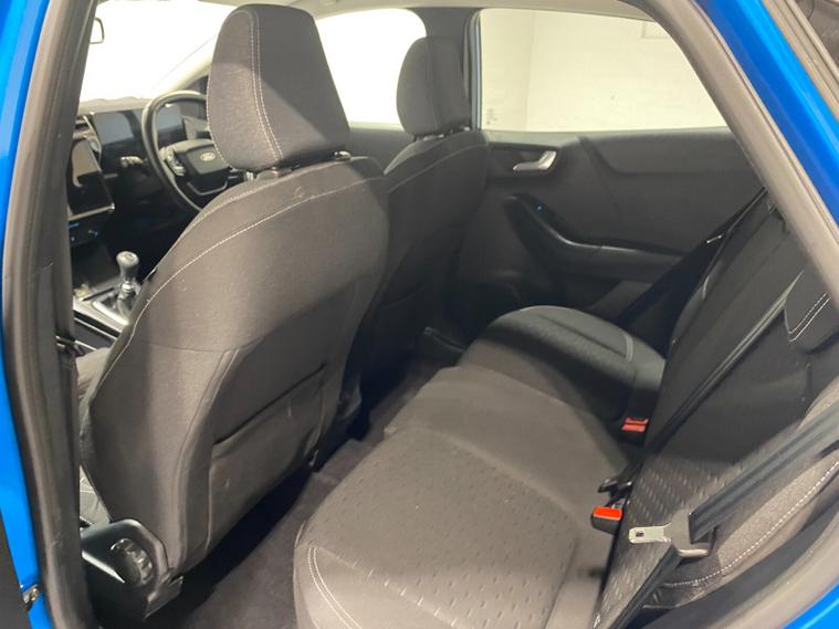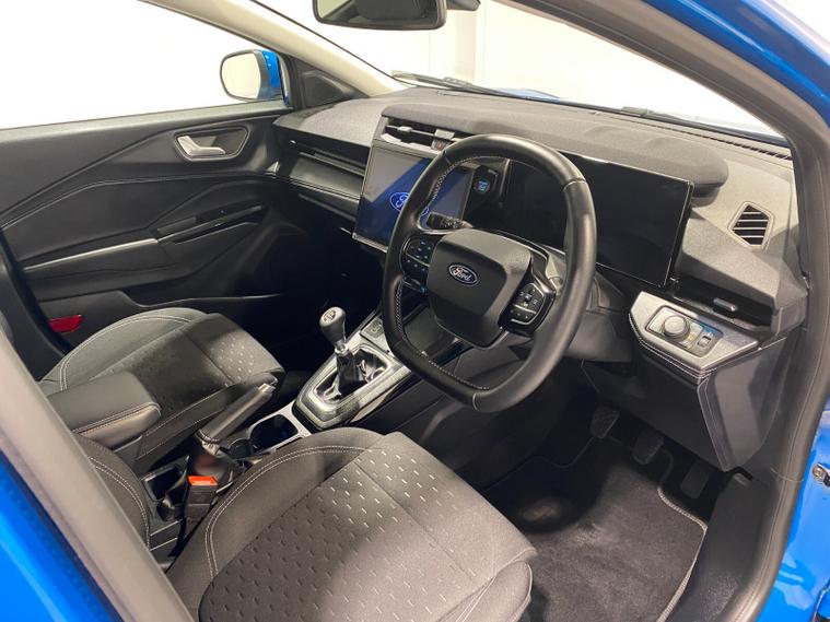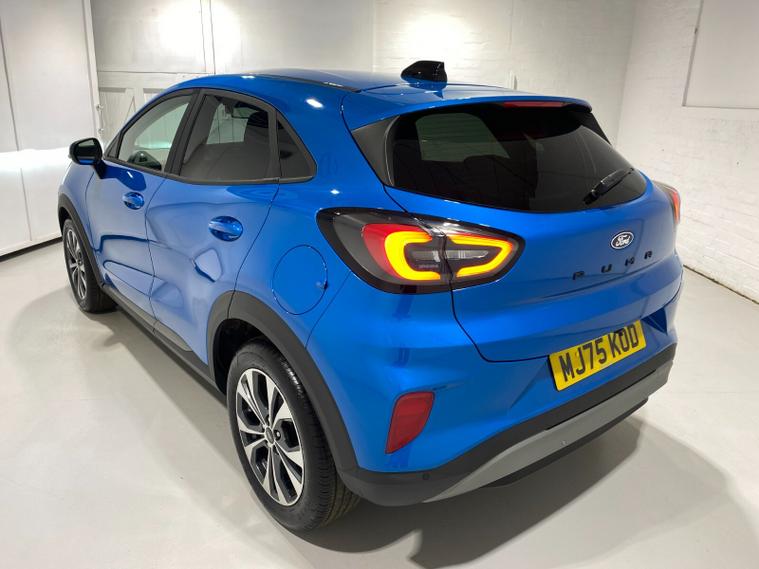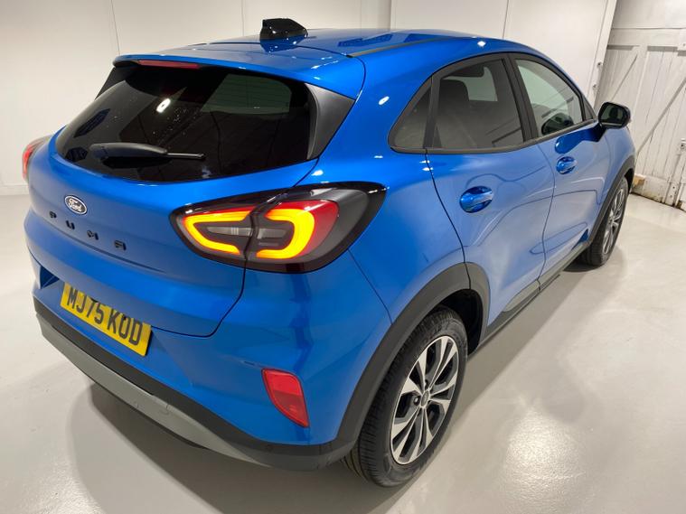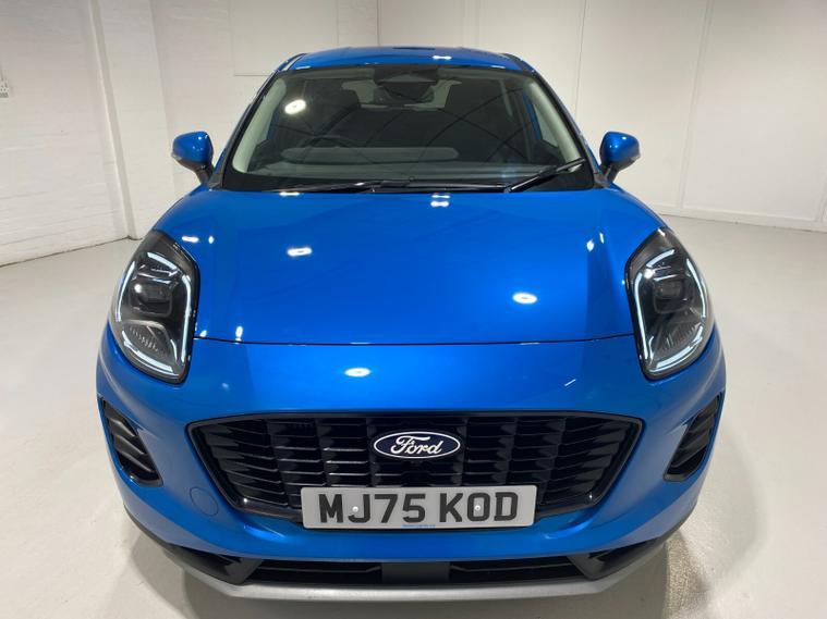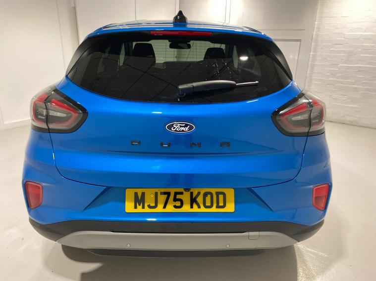 2025 75 Reg New Model Ford Puma 1.0 EcoBoost mHEV (125PS) TITANIUM 6spd Manual 5dr. Digital Aqua Blue metallic with Charcoal cloth interior, SYNC4 TOUCHSCREEN DAB SATELLITE NAVIGATION, REAR CAMERA, Bluetooth USB, Apple CarPlay, Android Auto, FORD MEGABOX EXTENDED BOOT SPACE, REAR parking sensors, 17 inch alloy wheels, AIR CON, FORD power start button, Drivers Assistance features to include traffic sign recognition, auto high beam & driver alert, centre console with arm rest, tyre pressure monitoring system, Thatcham alarm, NCAP Pack (lane-keeping alert & lane-keeping aid, speed limiter, rear seat belt minder, rear centre head restraint & auto-headlamps), front fog lamps with cornering lights, heated front screen, privacy glass, remote central locking, electric front windows, ESP, Hill start assist, trip computer, ambient lighting, 4, 293 miles (MJ 75 KOD).