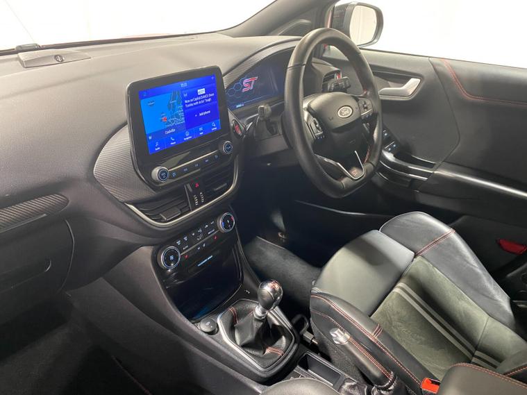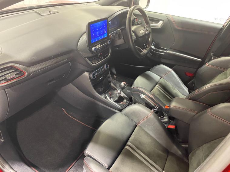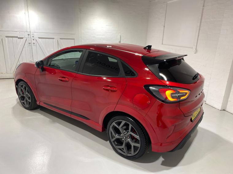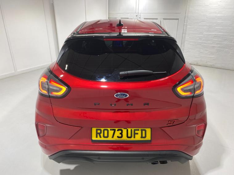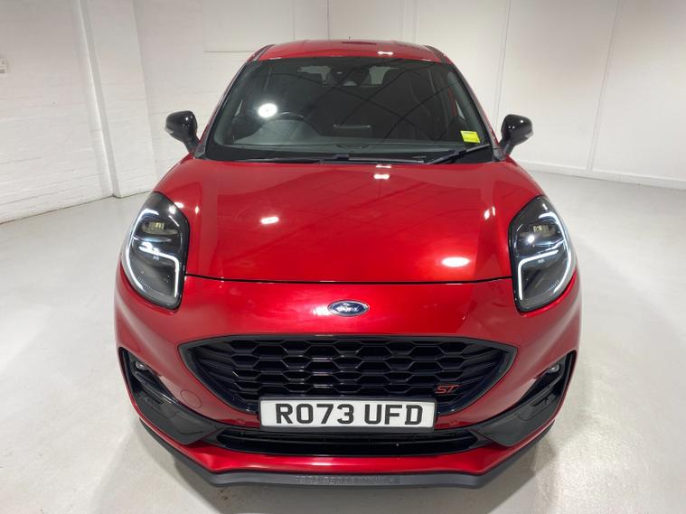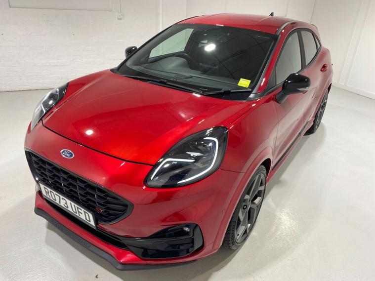 2023 73 Reg Puma 1.5 Turbo Ecoboost (200PS) 6 spd ST 5dr**Performance Pack**. Fantastic Red with Ford Performance half leather interior, heated front seats, heated steering wheel, PERFORMANCE PACK with LAUNCH CONTROL, QUAIFE Limited Slip Differential and Shift Light, SYNC3 DAB TOUCHSCREEN NAVIGATION, B&O PLAY with 360 degree sound system, Apple CarPlay and Android Auto, DRIVERS ASSISTANCE PACK with AEB by radar/camera. BliS (Blind Spot Information System), Active park assist and REAR VIEW CAMERA, WIRELESS CHARGE PAD, FRONT & REAR PARKING SENSORS, Bluetooth USB, PRIVACY GLASS, 19 inch ST alloys, red brake calipers, cruise control with speed limiter, FORD KEYFREE SYSTEM with KEYLESS ENTRY & Ford power start button, traffic sign recognition, auto high beam, electrically operated, heated and power folding door mirrors, auto lights, auto wipers, heated front screen, 25, 395 miles (RO 73 UFD).