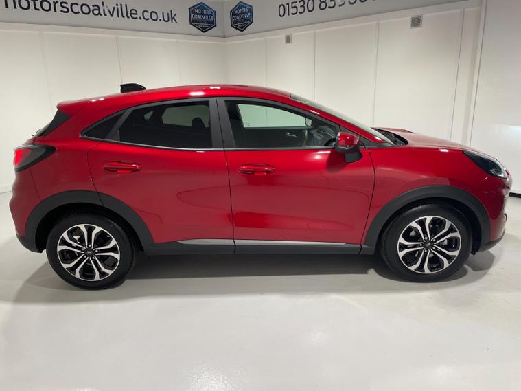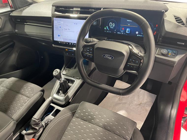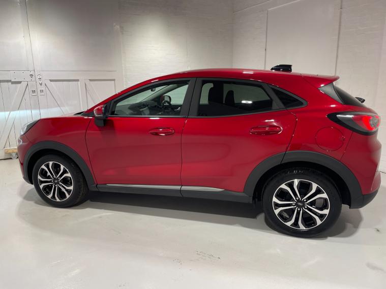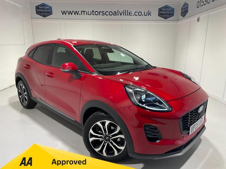 2025 25 Reg New Model Ford Puma 1.0 EcoBoost mHEV (125PS) TITANIUM 6spd Manual 5dr. Fantastic Red metallic with Charcoal cloth interior, SYNC4 TOUCHSCREEN DAB SATELLITE NAVIGATION, REAR CAMERA, Bluetooth USB, Apple CarPlay, Android Auto, FORD MEGABOX EXTENDED BOOT SPACE, REAR parking sensors, 17 inch alloy wheels, AIR CON, FORD power start button, Drivers Assistance features to include traffic sign recognition, auto high beam & driver alert, centre console with arm rest, tyre pressure monitoring system, Thatcham alarm, NCAP Pack (lane-keeping alert & lane-keeping aid, speed limiter, rear seat belt minder, rear centre head restraint & auto-headlamps), front fog lamps with cornering lights, heated front screen, privacy glass, remote central locking, electric front windows, ESP, Hill start assist, trip computer, ambient lighting, 2, 173 miles (BP 25 URL).