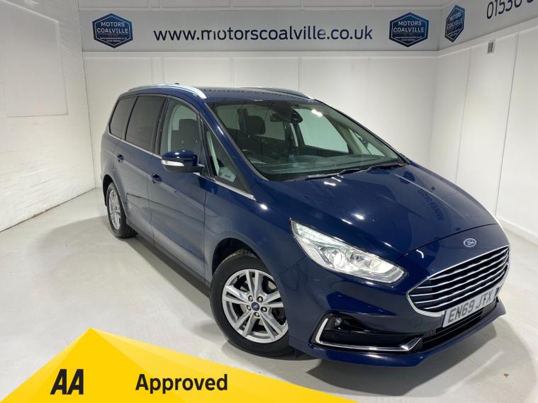 2020 69 Reg GALAXY 2.0 TDCi (190PS) TITANIUM AUTOMATIC **7 SEATER** 5dr. Blazer Blue with Ebony coth interior, TOUCHSCREEN SYNC 3 DAB and NAVIGATION SYSTEM, Bluetooth and voice control, KEYLESS ENTRY, FRONT and REAR PARKING SENSORS, Electric handbrake, Lane Keeping Aid, Traffic Sign recognition, power start button, Dual Zone ATC AIR CONDITIONING, power easy fold flat 3 row seats, cruise control with speed limiter, PRIVACY glass, auto wipers and lights, IPS system, ESP, Tyre Pressure monitor system, power front and rear windows with global closing, quickclear heated windscreen, remote locking, Thatcham alarm, ABS, 37, 179 miles (EN 69 JTX).