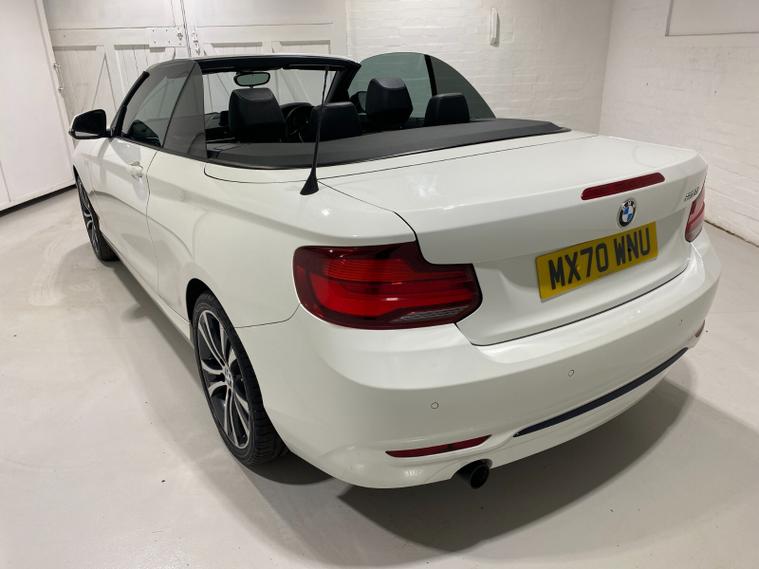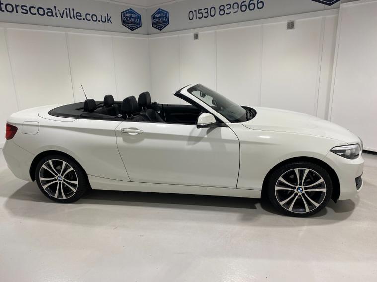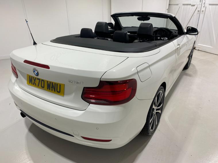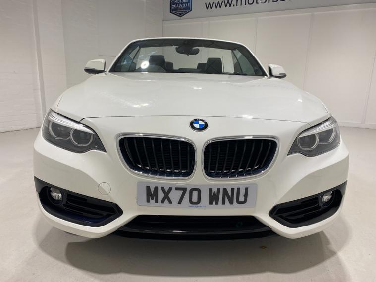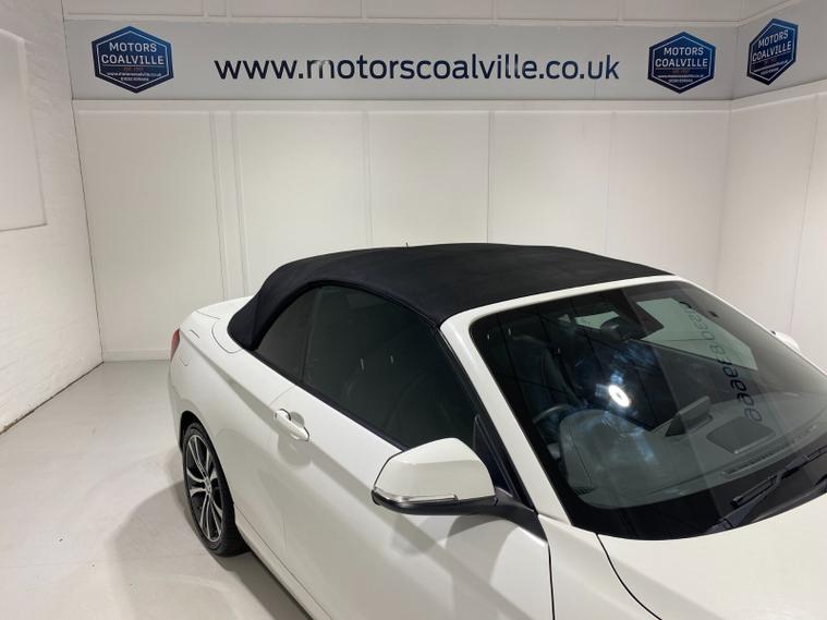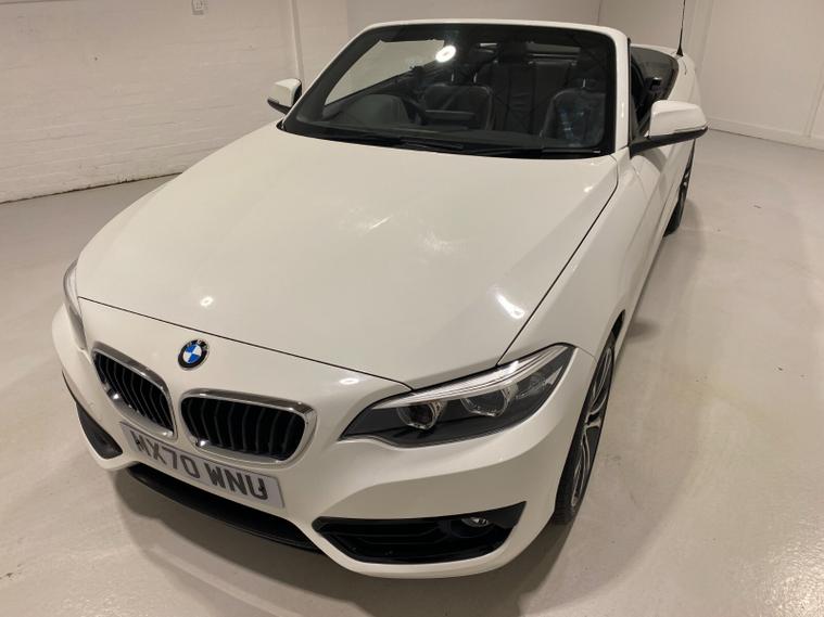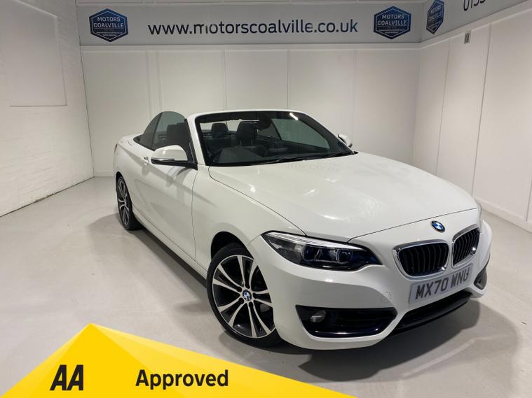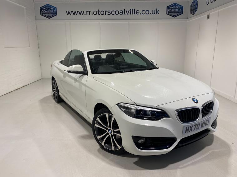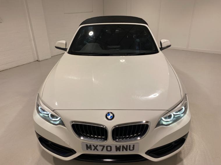 2020 70 Reg BMW 218i 1.5 (136PS) Automatic SPORT NAV CONVERTIBLE 2dr. Mineral White with DAKOTA LEATHER interior, COMFORT PACK with POWER FLOLDING MIRRORS, HEATED FRONT SEATS, DUAL ZONE CLIMATE CONTROL AIR CONDITIONING, EXTENDED STORAGE and LIGHTING, HARMAN/KARDON PREMUIM SOUND SYSTEM, BMW radio/CD, SATELLITE NAVIGATION, COMFORT PACKAGE with electric POWER FOLDING mirrors, HEATED STEERING WHEEL and heated scarf vents, Bluetooth USB, LED headlights, PDC FRONT and REAR parking sensors, auto lights and wipers, 17 inch alloy wheels, electric windows, DSC, Push Button Start, tyre pressure monitoring system, 12, 045 miles (MX 70 WNU).