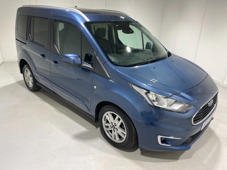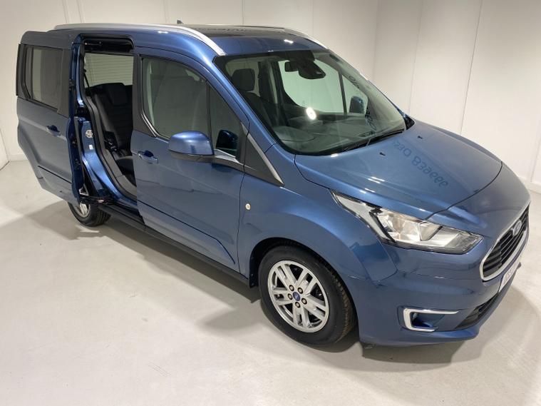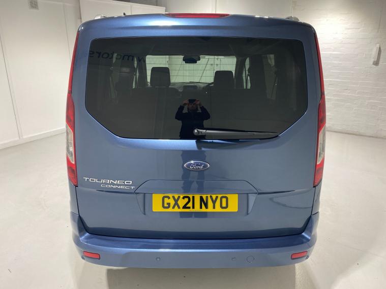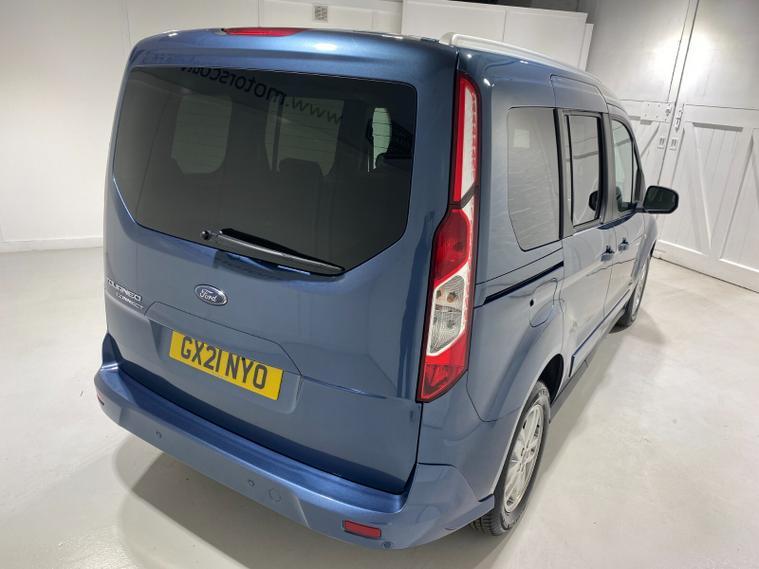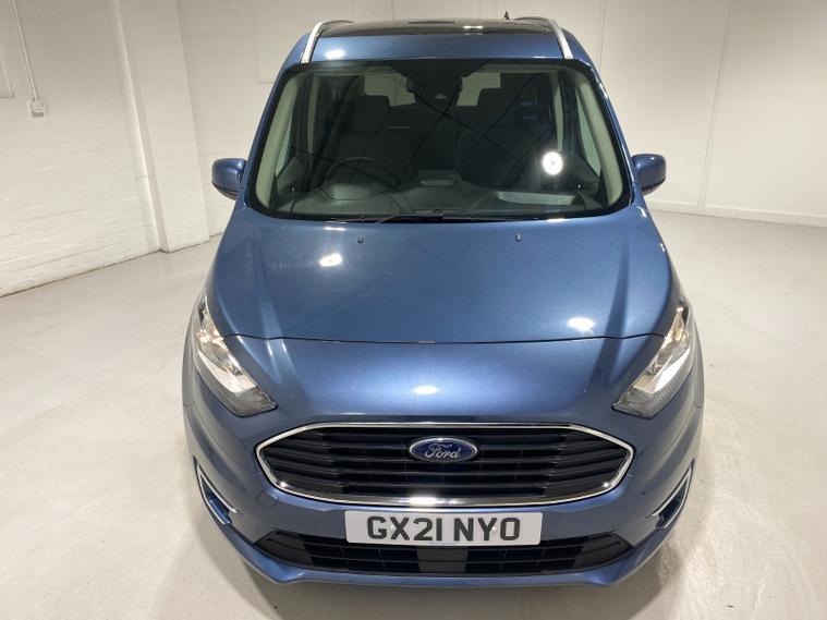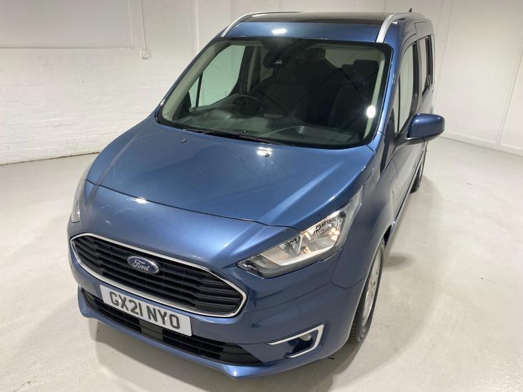 2021 21 Reg Ford Tourneo Connect 1.5 TDCi EcoBlue (120PS) Automatic TITANIUM 5dr. Chrome Blue metallic with black cloth interior, 16 inch alloy wheels, PANORAMIC GLASS ROOF, DAB, HEATED FRONT SEATS, Bluetooth USB, CLIMATE CONTROL, AIR CONDITIONING, REAR PARKING SENSORS, PRIVACY GLASS, electric front and rear windows, heated front and rear screens, cruise control with speed limiter, roof rails, auto lights, rain sensing wipers, front driver and passenger, active city stop, side and curtain airbags, front fog lights, electrically operated heated and power folding door mirrors, tinted glass, ABS, ESP, 25, 695 miles (GX 21 NYO).
