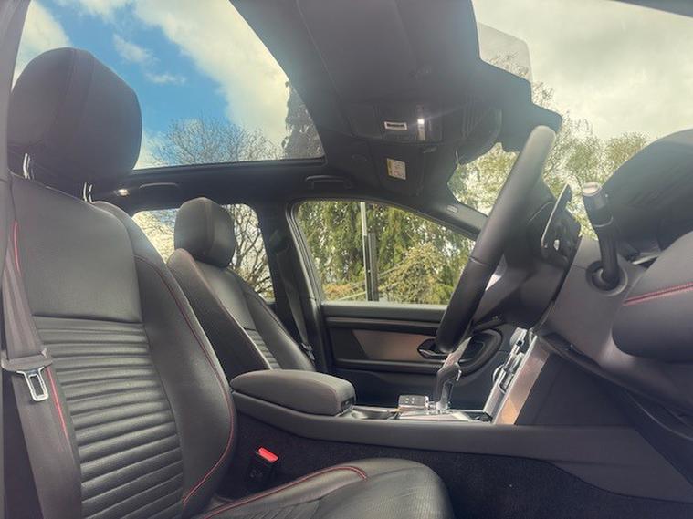 Land Rover Discovery Sport 1.5 P300e R-Dynamic SE 5dr Auto [5 Seat] 2022/22 SUPERB CONDITION VERY LOW MILEAGE PETROL, POWERFULL WITH OVER 300BHP YET ECONOMICAL WITH 5 SEATS, METALLIC FIRENZE RED WITH BLACK LEATHER WITH CONTRAST STICHING AND UPGRADED ALLOYS . PANORAMIC SUNROOF WITH POWERBLIND, SAT NAV, REAR CAMERA, HEATED ELECTRIC SEATS, LED LIGHTS PLUS MUCH 1 OWNER. FULL SERVICE HISTORY. NATIONAL PREMIUM WARRANTY WITH EXTENDED POLICIES AVAILABLE FOR 12/24 OR 36 MONTHS., Full leather interior, Four wheel-drive, 5 seats, FIRENZE RED METALLIC, 1 owner, Upgrades - 20in Alloy Wheels - Style 5089 - 5 Split-Spoke - Gloss Black, Standard Features - 12-Way Heated Electric Driver Memory Seats with 2-Way Manual Headrests, 20in Alloy Wheels - Style 5076 - 5 Split-Spoke - Satin Dark Grey, 3D Surround Camera, 5 Seats - Seating Configuration, ABS - Anti Lock Braking System, AHBA - Auto High Beam Assist, ATPC - All Terrain Progress Control, Airbags - Front - Driver and Front Passenger, Ambient Interior Lighting, Android Auto, Apple CarPlay, Auto-Dimming Interior Mirror, Automatic Headlight Levelling, Automatic Headlights and Rain Sensing Wipers, BBUS with Tilt Sensor, Black Exterior Pack, Blind Spot Assist, Body Coloured Roof, Brake Hold, Bright Metal Pedals, Cabin Lighting, Carpet Mats, Clear Exit Monitor, Cruise Control and Speed Limiter, DAB - Digital Audio Broadcast, Door Mirrors - Power Fold - Heated - Electric with Approach Lights - Auto-Dimming Drivers Side, Driver Condition Monitor, Ebony Headlining, Electric Windows - Front and Rear, Emergency Braking, Fixed Panoramic Roof, Front Passenger Seat ISOFIX, Front and Rear 12V with Front USB, HDC - Hill Descent Control, High Speed Emergency Braking, Hill Launch Assist, Interactive Driver Display, Intrusion Sensor, Lane Keep Assist, Locking Wheel Nuts, Manually Adjustable Steering Column, Metal Treadplates with R-Dynamic Branding, Noble Chrome Centre Stack Rails, Online Pack with Data Plan, P300e Badge, Parking Aid - Front, Parking Aid - Rear, Perforated Leather Steering Wheel, Pivi Pro - Connected, Power Assisted Steering, Powered Tailgate, Premium LED Headlights with Signature DRL, Public Charging Cable, Rear Traffic Monitor, Rear View Camera, Remote, Satin Chrome Gearshift Paddles, Secure Tracker (12 Month Subscription From New), Shadow Aluminium Trim Finisher, Slide and Recline Rear Seats - Manual, Sound System, TPMS - Tyre Pressure Monitoring System, Terrain Response 2, Traffic Sign Recognition and Adaptive Speed Limiter, Two-Zone Climate Control with Second Row Vents, Tyre Repair System, Wade Sensing, Windscreen - Heated, EXCEPTIONAL HPI CLEAR CARS. 12 MONTHS AA BREAKDOWN COVER. FULL DEALER FACILITIES, £26000