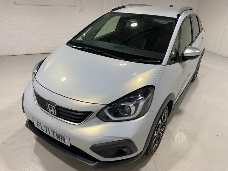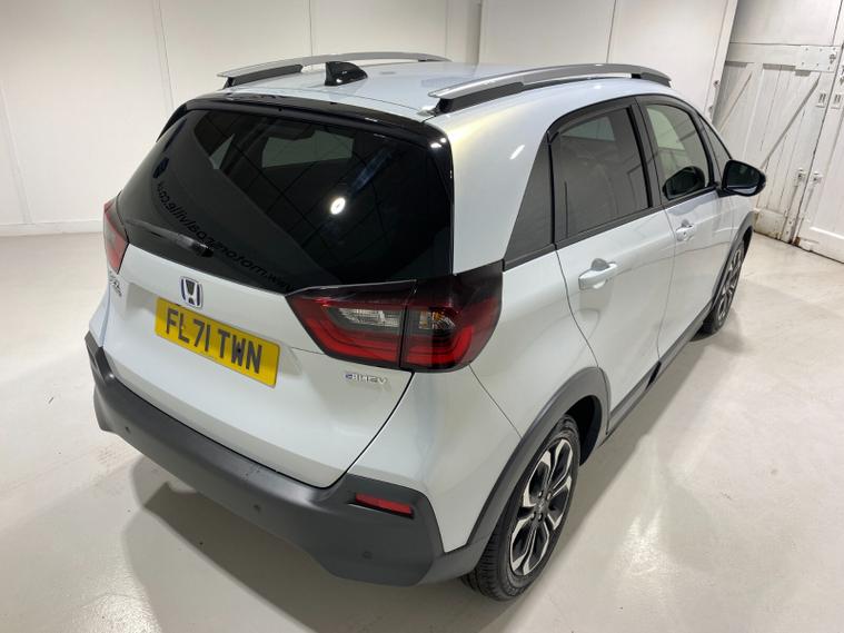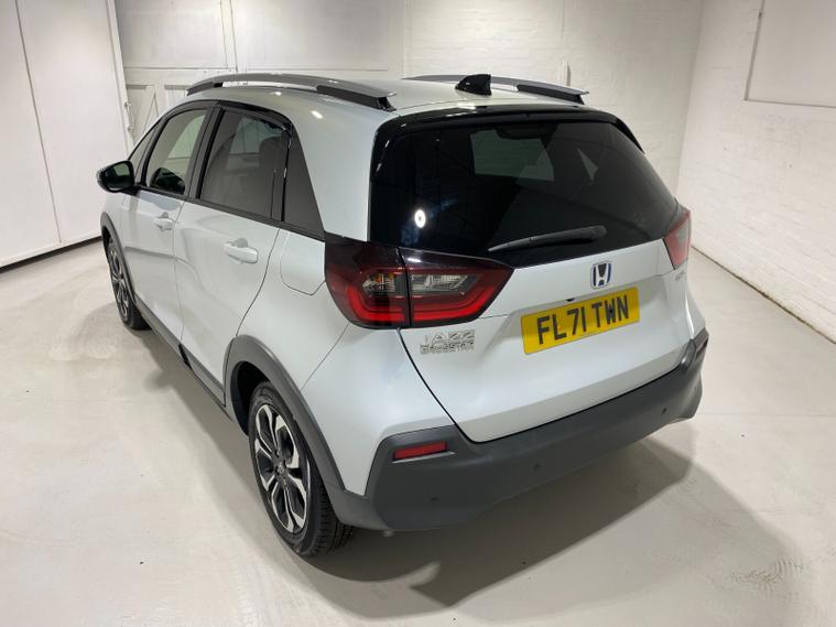 2021 71 Reg Honda Jazz 1.5h i-MMD (109PS) Automatic Crosstar EX 5dr. Sunlight White with Grey fabric interior, 16 inch alloy wheels, connect TOUCHSCREEN with Apple Car Play, Android Auto, DAB and USB, REAR PARKING SENSORS, REAR VIEW CAMERA, electrically operated, heated and power FOLDING door mirrors, privacy glass, AUTO AIR CON, electric park brake, keyless start, LED HEADLIGHTS, daytime running lights, roof rails, privacy glass, speed limiter, adaptive cruise control, auto lights with high beam assist and rain sensing wipers, front and rear electric windows, road departure mitigation, forward collision warning, traffic sign recognition, ABS, EBD, 6, 198 miles (FL 71 TWN).