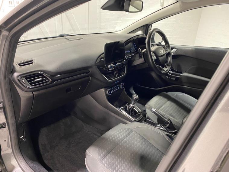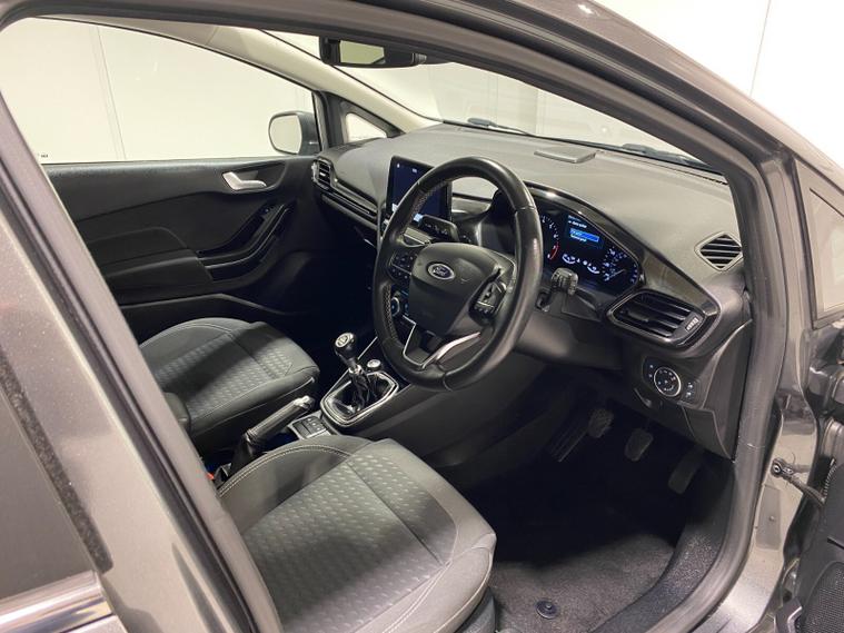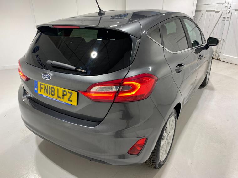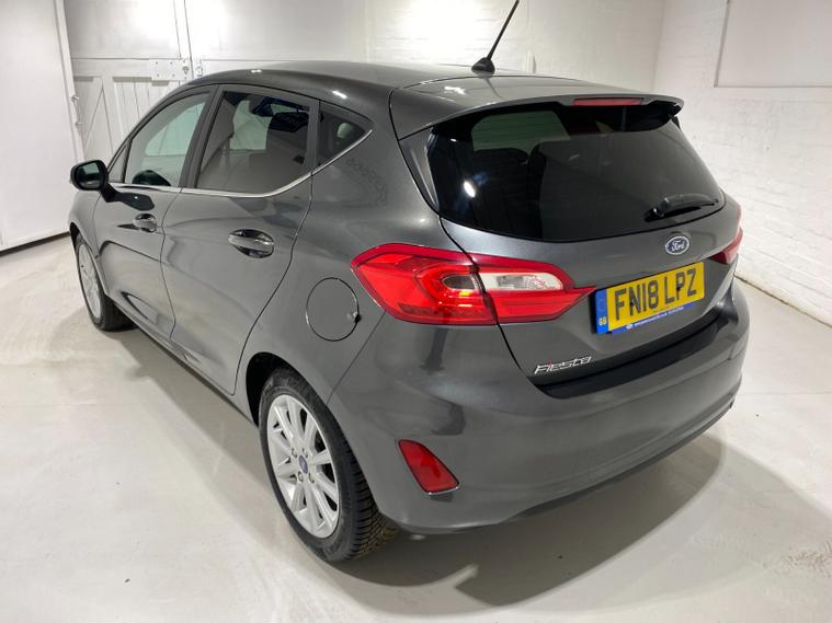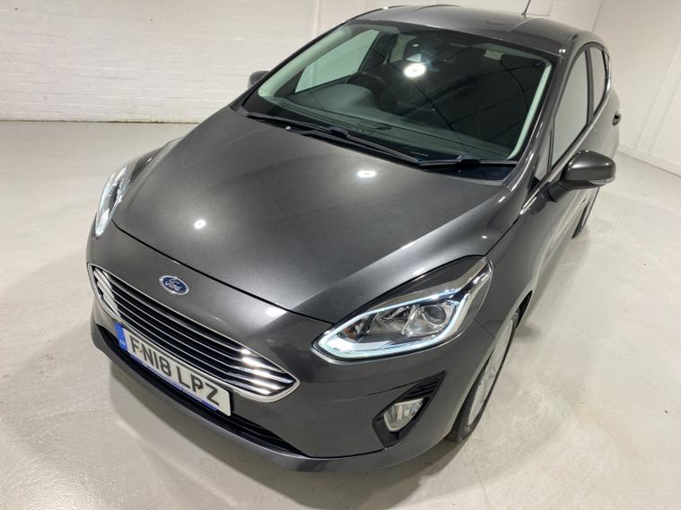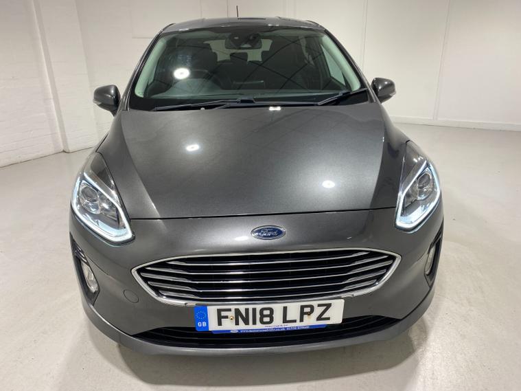 2018 18 Reg Fiesta 1.0 EcoBoost (100PS) 6spd TITANIUM 5dr. Moondust Silver metallic with charcoal cloth, SYNC 3 DAB SATELLITE NAVIGATION, Apple CarPlay, Android Auto, Bluetooth USB, privacy glass, electrically operated, heated and power folding mirrors, alloy wheels, tyre pressure monitoring system, Thatcham alarm, NCAP Pack (lane-keeping alert & lane-keeping aid, speed limiter, rear seat belt minder, rear centre head restraint & auto-headlamps), front fog lamps with cornering lights, heated front screen, remote central locking, electric front windows, ESP, Hill start assist, trip computer, ambient lighting, 29, 500 miles (FN 18 LPZ).