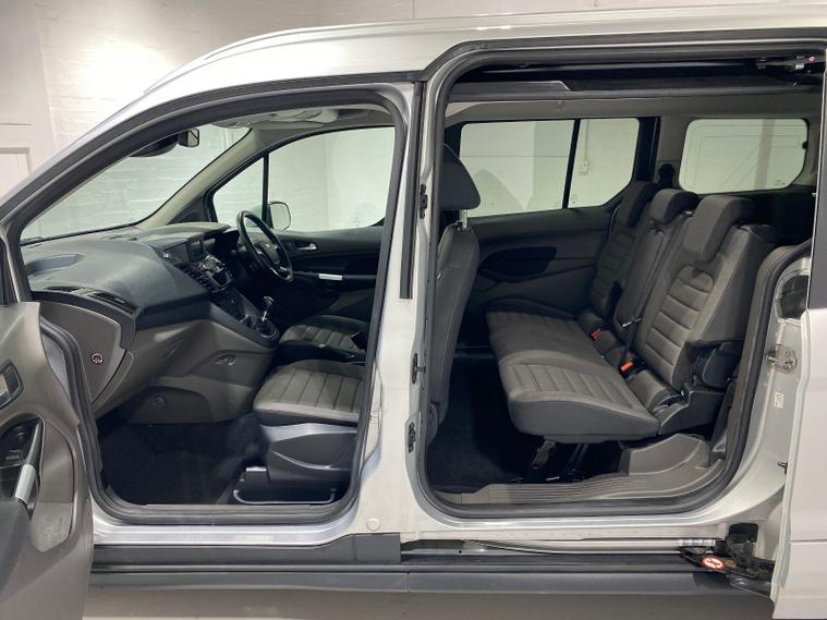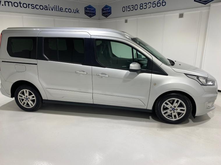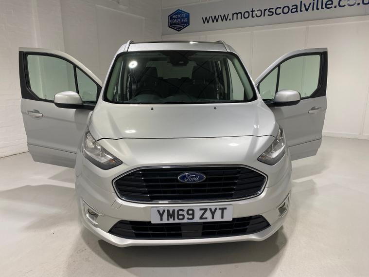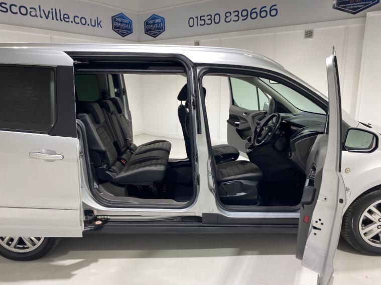 2020 69 Reg Ford Grand Tourneo Connect 1.5 TDCi EcoBlue (120PS) 6 spd TITANIUM 5dr, 7 seater. Moondust Silver metallic with black cloth interior, 16 inch alloy wheels, PANORAMIC GLASS ROOF, DAB, Bluetooth USB, AIR CONDITIONING, REAR PARKING SENSORS, PRIVACY GLASS, electric front and rear windows, heated front and rear screens, cruise control with speed limiter, roof rails, auto lights, rain sensing wipers, front driver and passenger, active city stop, side and curtain airbags, front fog lights, electrically operated heated and power folding door mirrors, tinted glass, ABS, ESP, 51, 315 miles (YM 69 ZYT).
