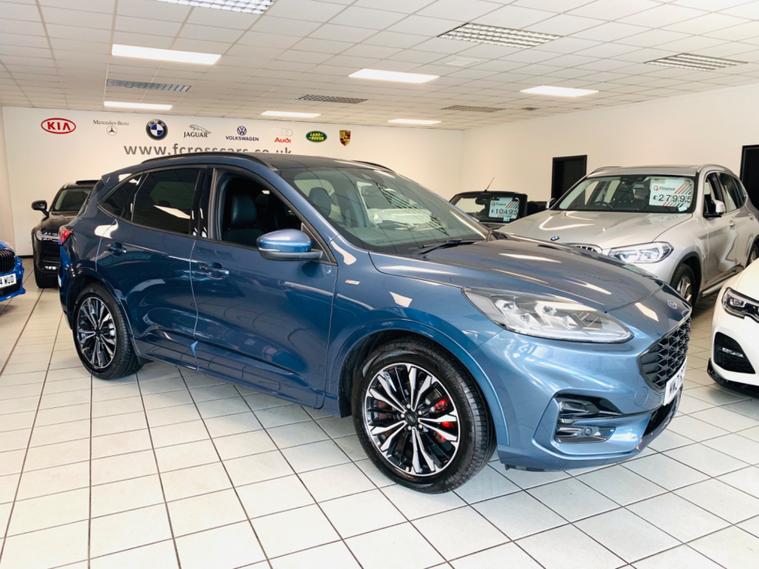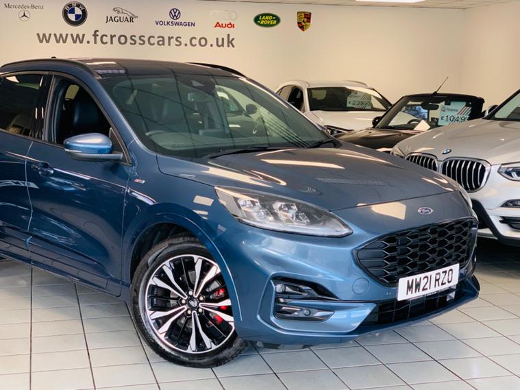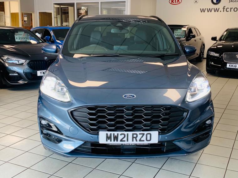 ** RESERVE ONLINE TODAY FOR £199 ** Just Arrived A Great Specification One Owner Ford Kuga 1.5 Tdci ST-Line X Finished In Chrome Blue Metallic, Ford Service History, 19in Gloss Black Diamond Cut Alloy Wheels, Satellite Navigation, Bluetooth Connectivity, Wireless Charging, DAB Digital Radio / 2 X USB With Bang And Olufsen Speakers, Large Glass Opening Panoramic Sunroof, Heated Half Leather Effect / Alcantara Seats, Front And Rear Parking Sensors With Rear View Camera Assist, Heated Quick Clear Front Screen, Heated Power Folding Door Mirrors, Cruise Control, Rear Privacy Glass, Dual Zone Climate Control,