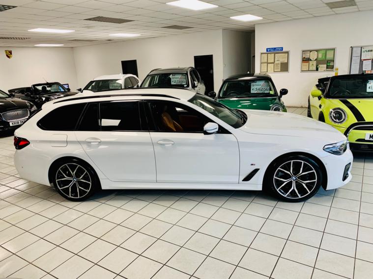 ** RESERVE ONLINE TODAY FOR £199 ** Just Arrived A Fantastic Looking BMW 520d X-Drive M-Sport MHEV Automatic Tourer Finished In Alpine White, Full BMW Service History, Serviced When Required At 12924 Miles, 24958 Miles, 29905 Miles, 41827 Miles, 19in Gloss Black Diamond Cut Alloy Wheels, Large Screen Satellite Navigation, Bluetooth Connectivity, DAB Digital Radio / USBc / USB, Part Electric Heated Cognac Dakota Leather M -Sport Seats, Leather Multi Function Steering Wheel With Paddle Shift, LED Headlights, Front And Rear Optical / Acoustic Parking Sensors With Rear View Camera Assist, Rear Privacy Glass, Power Operated Rear Tailgate, Cruise Control, Speed Limiter, Dual Zone Climate Control, Heated Power Folding Door Mirrors,