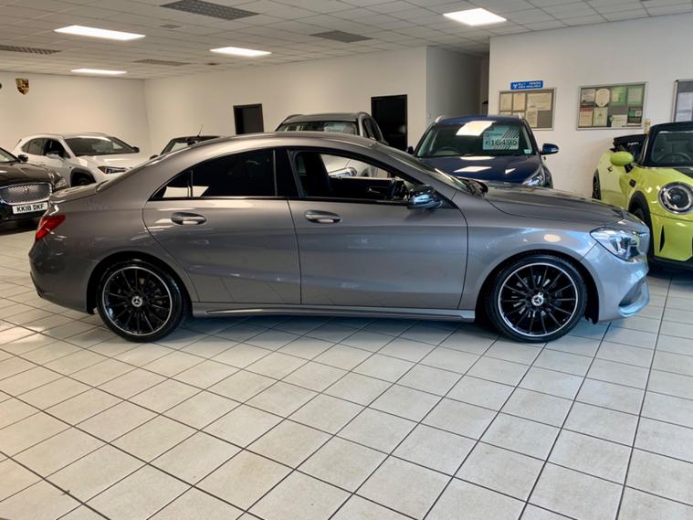 ** RESERVE ONLINE TODAY FOR £199 ** Just Arrived A Great Looking Mercedes CLA 200 1.6 AMG - Line Night Edition Automatic Finished In Mountain Grey Metallic, Mercedes service History, Serviced At 10214 Miles, 18303 Miles, 30050 Miles, 41911 Miles, 54082 Miles, And It Will Be Serviced Before Delivery Done By Our Own Factory Trained Technicians, 18in Gloss Black Diamond Cut Alloy Wheels, Satellite Navigation, Bluetooth Connectivity, DAB Digital Radio , 2 X USB With Harmon / Kardon Speakers, Heated Half Leather / Alcantara Effect Seats, Leather Flat Bottomed Multi Function Steering Wheel With Paddle Shift, Front And Rear Parking Sensors With Rear View Camera Assist, LED High Performance Headlights, Rear Privacy Glass, Heated Power Folding Door Mirrors,