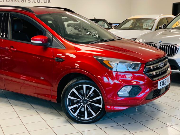 ** RESERVE ONLINE TODAY FOR £199 ** Just Arrived A Great Looking AWD Ford Kuga 2.0 Tdci ST-Line X Automatic Finished In Ruby Red Metallic, Full Service History, Serviced At 7507 Miles, 15276 Miles, 21804 Miles, 26230 Miles, 44028 Miles, 53595 Miles, 65313 Miles, 18in Gloss Black Diamond Cut Alloy Wheels, Sync 3 Satellite Navigation, Bluetooth Connectivity, DAB Digital Radio / Cd / 2 X USB, Part Leather / Alcantara Effect Seats, Leather Multi Function Steering Wheel With Paddle Shift, LED Headlights, Front And Rear Parking Sensors, Rear Privacy Glass, Ford Detachable Tow Bar, Cruise Control, Speed Limiter, Dual Zone Climate Control, Heated Power Folding Door Mirrors, Heated Quick Clear Front Screen,