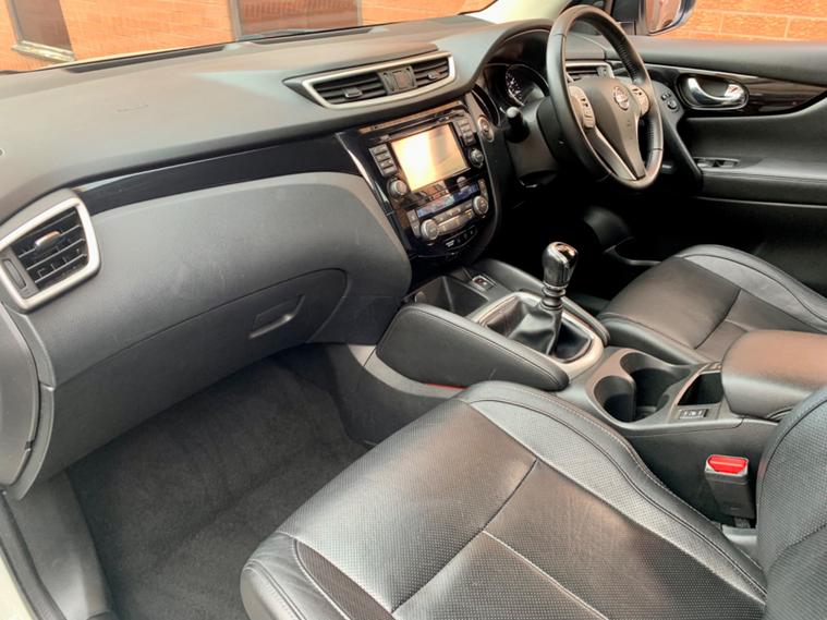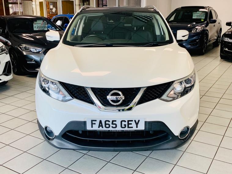 ** RESERVE ONLINE TODAY FOR £199 ** Just Taken In Part Exchange A Locally Owned Nissan Qashqai 1.5d Tekna Finished In White Pearl, Service History, And It Will Be Serviced And Mot'd Before Delivery Done By Our Own Factory Trained Technicians, 19in Gloss Black Diamond Cut Alloy Wheels, Satellite Navigation, Bluetooth Connectivity, DAB Digital Radio / Cd / AUX In / USB, Large Glass Panoramic Sunroof, Electrically Adjustable Heated Black Leather Seats, Heated Power Folding Door Mirrors, Heated Quick Clear Front Screen Front And Rear Parking Sensors With 360 Degree Camera Assist, Halogen Headlights, Front Fog Lights, Keyless Entry, Dual Zone Climate Control,