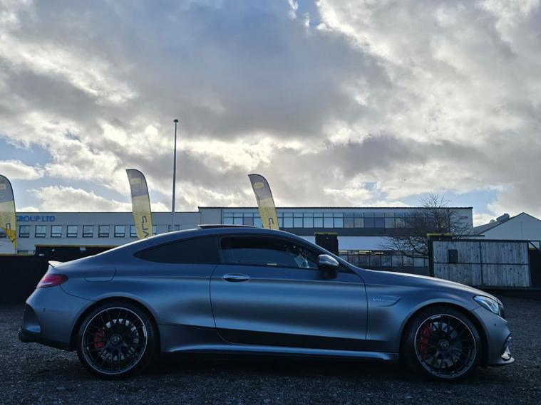 Introducing the Mercedes-Benz C Class 4.0 C63 V8 BiTurbo AMG S (Premium) Coupe, now available at Alpine Motor Company in Dundee. This striking coupe, finished in breathtaking Designo Selenite Grey Magno, perfectly marries luxury with performance. Under the bonnet lies a beastly 4.0-litre V8 BiTurbo engine, delivering a staggering 503 BHP, ensuring an exhilarating drive every time. The SpdS MCT transmission offers seamless gear changes, putting you in control of a thrilling driving experience. With a full Mercedes-Benz service history, you can drive away with confidence knowing this vehicle has been meticulously maintained. Enjoy the premium features of the Burmester Sound System for unparalleled audio quality on every journey, and rest easy knowing that this coupe meets ULEZ standards, making it a responsible choice for urban driving. Having had just one previous owner, this C63 Coupe radiates sophistication and capability. Experience the perfect blend of powerful performance and refined elegance. Don’t miss this opportunity to own a true masterpiece of automotive engineering. Visit Alpine Motor Company in Dundee today and let us help you embrace the extraordinary!