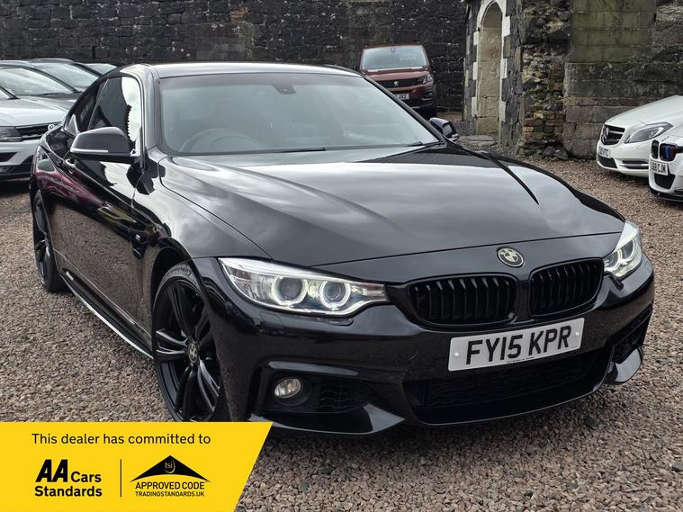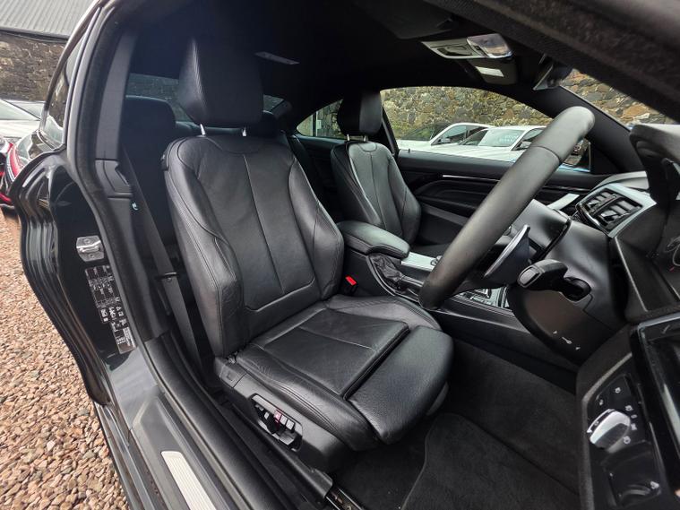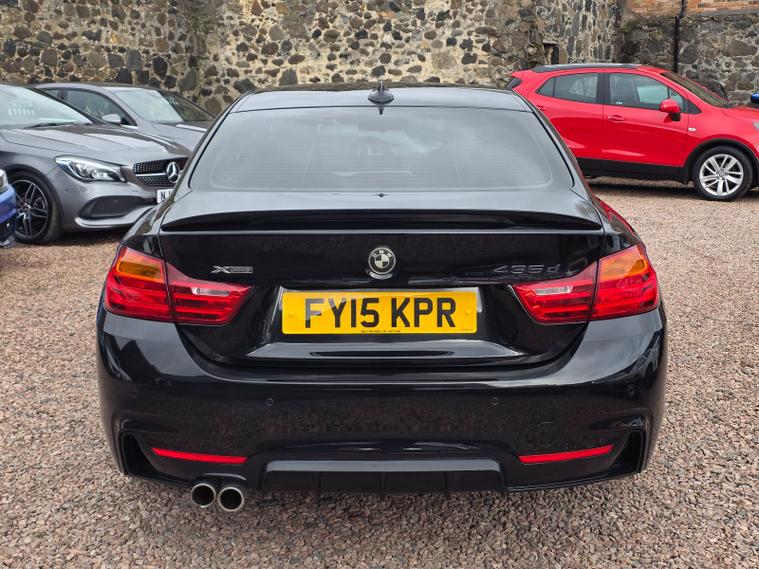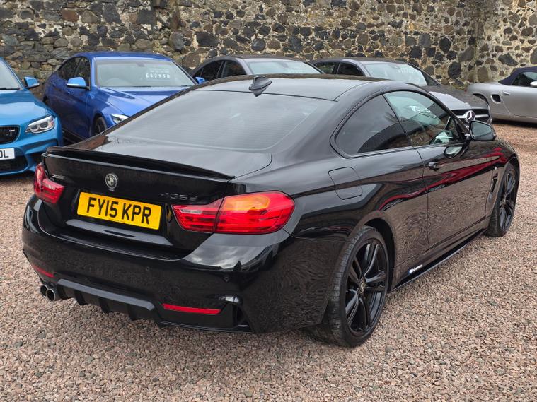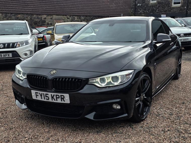 ?Automatic 313BHP 435d Coupe in all black? 2015 BMW 4 SERIES 3.0 435D M SPORT XDRIVE ➡️£12450 ➡️99, 000 miles ➡️Black Sapphire Metallic ?Sport automatic transmission with paddle shift ?Dakota black leather heated sports seats ?xDrive all wheel drive system ?Turbo charged 313BHP engine ?Large screen Pro Media ?LEZ compliant ?Xenon headlights, electric memory seats, cruise control, drive performance control, front and rear parking sensors, M Sport package, dual zone climate control, 19in alloys ✅AA Cars Motor Dealer ✅Warranty included with upgrades available ✅Free 12 months AA Breakdown Cover ✅Finance options available ✅Part exchange welcome ?Rely Motors Ltd, Bankhead Buildings, Kinglassie, KY5 0UH ? dealer's website ?01592332302 / 01592332302 ?info dealer's website Specification includes 19in Alloy Wheels - M Double Spoke Style - 442M, ASC - Automatic Stability Control, Air Breather - Black High Gloss, Air Conditioning - Automatic with Two-Zone Control, Air Conditioning and Radio Control Panel in High Gloss Black, Airbags - Passenger Deactivation, Alarm System Thatcham 1 with Remote Control, Ambient Lighting - Switchable BMW Classic Orange - Cold White - LED, Armrest - Rear Centre, Automatically Dimming Rear View Mirror, Auxiliary Input, BMW Apps Interface, BMW ConnectedDrive Online Services, BMW Remote Services, BMW TeleServices, Battery Safety Cut Off, Bluetooth Hands Free with Audio Streaming, Bluetooth Hands Free with USB Audio Interface, Bottle Holders - Front Door Storage Compartments, Brake Drying, Bumpers - Body Colour, CBC - Cornering Brake Control, Comfort Go Keyless Engine Start, Concierge Service, Crash Sensor, Cruise Control with Brake Function, DAB - Digital Radio, DBC - Dynamic Brake Control, DSC - Dynamic Stability Control Plus, DTC - Dynamic Traction Control, Daytime Driving Lights, Display - 6.5in Colour Screen, Door Handles - Body Colour, Door Mirrors - Body Coloured Housing, Door Mirrors - Electric and Heated, Door Sill Finishers - M Designation, Drive Performance Control - ECO PRO - Comfort - Sport and Sport Plus, Dynamic Brake Lights, Electronic Differential Lock, Enhanced Bluetooth Telephone Preparation with USB Audio Interface and Voice Control, Extended Lighting, Exterior Trim - High Gloss Shadowline, First Aid Kit, Front Fog Lights, Full Black Panel Display, Gear Knob - Leather, Handbrake - Leather, Head Restraints - Front and Rear, Headlight Wash, Headlights - Automatic Activation, Headlights - Beam Throw Control, Headlining - M Anthracite, Heat Protection Glazing with Green Tint, Information Plus, Interior Lighting - Front and Rear Centre, Interior Trim - Aluminium Hexagon with Estoril Blue Finisher, Interior Trim - Brushed Aluminium, Interior Trim Finisher - Estoril Blue, Loading Aid, Luggage Compartment - Lashing Eyes, M Aerodynamic Bodystyling, M Leather Gear Lever, M Sport Instrument Cluster, M Sport Package, Media Package - BMW Professional, Navigation System - BMW Professional Multimedia, PDC - Park Distance Control - Front and Rear, Personal Profile, Real Time Traffic Information, Roof Mouldings - Body Colour, Seats - Front Electric Adjustment with Driver Memory, Seats - Front Heated, Seats - Front Sports, Seats - Split Rear 60-40, Shark Fin Aerial, Side Exterior M Designation Badges, Side Impact Protection, Speakers x6, Sport Automatic Transmission, Sun Visors with Vanity Mirrors and Ticket Holder, TPMS - Tyre Pressure Monitoring System, Tyres - Reduced Rolling Resistance, USB Connection, Warning Triangle, Welcome Light, Windscreen with Grey Shade Band, Xenon Headlights
