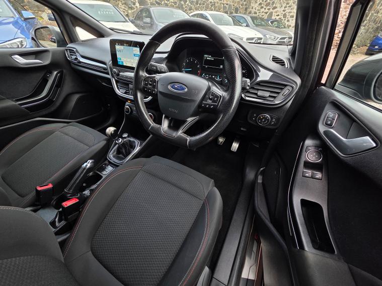 ?Ford Fiesta with ST-Line sports styling? 2018 FORD FIESTA 1.0 ECOBOOST ST-LINE ➡️£7950 ➡️64, 000 miles ➡️Magnetic Grey Metallic ?ST-Line sports body styling ?Apple CarPlay and Android Auto ?Sports seats and steering wheel ?140BHP returning 62MPG ?LEZ compliant ?LED DRLs, sports suspension, cornering lights, heated windscreen, lane keep assist, speed limiter, eco mode, air conditioning, electric heated mirrors, 17in alloys, auto headlights and wipers ✅AA Cars Motor Dealer ✅Free 3 month warranty included ✅Free 12 months AA Breakdown Cover ✅Finance options available ✅Part exchange welcome ?Rely Motors Ltd, Bankhead Buildings, Kinglassie, KY5 0UH ? dealer's website ?01592332302 / 01592332302 ?info dealer's website Specification includes 17in Alloy Wheels - ST-Line 5-Spoke - Rock Metallic, Air Conditioning - Manual, Black Belt Line Finisher, Centre Console with Armrest and Illuminated Cupholders, Courtesy Light - Ambient LED Courtesy Lighting Cup Holder, Courtesy Light - Front Map Light and Rear - Overhead LED, Door Handles - Body Colour, Door Lever - Chrome Finish, EBD - Electronic Brakeforce Distribution, Electronic Stability Control - ESC with Traction Control and Emergency Brake Assist - EBA, Electronic Stability Programme - ESP with Hill Start Assist, Ford DAB Radio with Ford SYNC3 - Apple Car Play and Android Auto, Ford Easy Fuel System, Front Bumper - Unique ST-Line, Front Seats - Sports Style, Gearshift Knob - ST -Line Leather Trimmed with Aluminium Inset and Metal Grey Gaiter Stitching, Glovebox - Illuminated, Headlights - Automatic On-Off, Headlights - Halogen Projector with Black Bezel and Dedicated LED Daytime Running Lights, Headliner - Woven, IPS - Intelligent Protection System, Leather-Trimmed Handbrake, MyKey, NCAP Pack, Rear Bumper - Unique ST-Line, Rear Fog Lamps, Rear Seat - 60-40 Split Back and Cushion, Rear Spoiler - Body Colour - Large, ST Line Front Scuff Plates, ST-Line Front Fog Lamps with Cornering Lights, ST-Line Side Skirt Body Mouldings - Body Colour, Sports Pedals, Sports Tuned Suspension, Tailgate Wash-Wipe, Thatcham Alarm, Tyre Pressure Monitoring System - TPMS, Wipers - Standard with 6 Speed Interval Settings