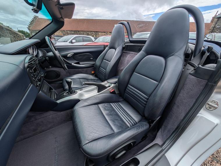 ?Exceptional example garaged for over a decade? 2002 PORSCHE BOXSTER S 3.2 986 CONVERTIBLE ➡️£10950 ➡️40, 600 miles ➡️Arctic Silver Metallic ?Same owner for last 16 years ?Dry stored in a garage ?Electric soft top roof ?Heated leather seats ?248BHP engine ?Xenon headlights, headlights washers, electric backrest adjustment, CD changer, electric mirrors, sports brakes ✅AA Cars Motor Dealer ✅Warranty included with upgrades available ✅Free 12 months AA Breakdown Cover ✅Finance options available ✅Part exchange welcome ?Rely Motors Ltd, Bankhead Buildings, Kinglassie, KY5 0UH ? dealer's website ?01592332302 / 01592332302 ?info dealer's website