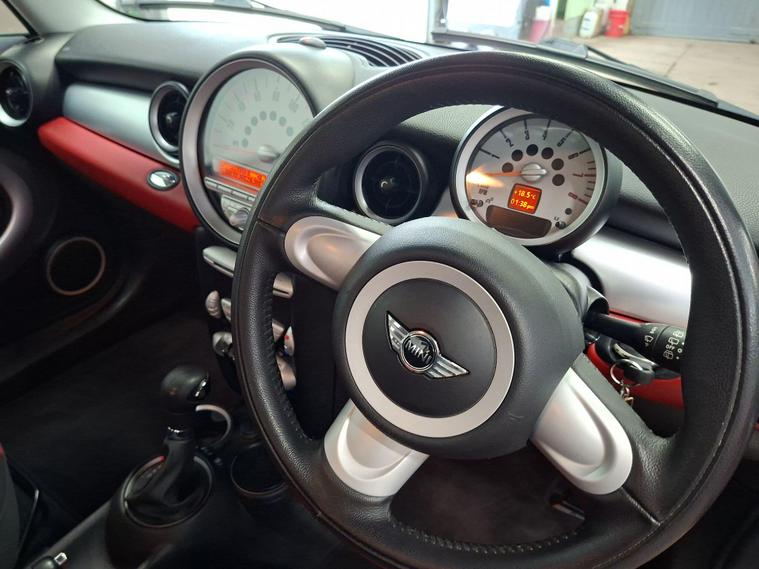 This 2009 MINI Hatch Cooper is a rare find, having been cherished by just one owner since new. Powered by a responsive 1.6L petrol engine, this Cooper model offers a smooth driving experience. Inside, you'll find a comfortable interior featuring a Leather Cloth mix in Rooster Red, complemented by auto air conditioning with a cooled glovebox for your comfort. Connectivity is made easy with basic Bluetooth function and a USB audio interface, allowing you to enjoy your music and take calls hands free. Parking is also made simpler with rear park distance control. The MINI Hatch Cooper is known for its engaging performance, achieving 0-62mph in 10.4 seconds, which indicates a lively yet manageable acceleration. Furthermore, its placement in a low insurance group makes it an economical choice for many drivers, suggesting lower running costs compared to similar vehicles. This combination of single ownership, desirable features, and cost effective ownership highlights make this MINI Hatch Cooper a compelling option.
