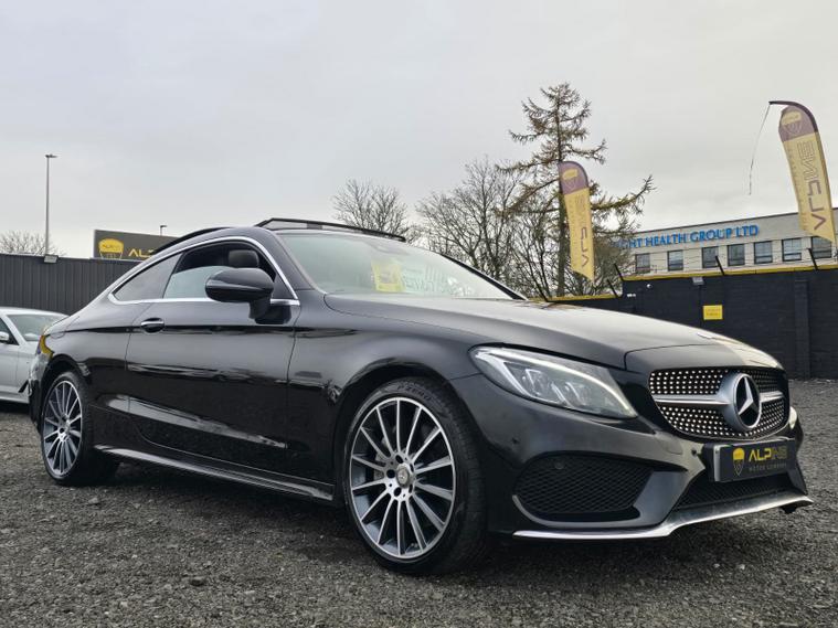 Introducing the stunning Mercedes-Benz C-Class 2.0L C 300 AMG Line Premium+ Coupe, a true masterpiece in Obsidian Black Metallic, now available at Alpine Motor Company in Dundee. This sophisticated sports coupe combines elegant styling and powerful performance, boasting a robust 241 bhp engine that promises an exhilarating driving experience. Step inside to discover a world of luxury, featuring plush Black Artico leather upholstery complemented by the Premium Plus Package. Enjoy the breathtaking panoramic roof that floods the cabin with light, along with the crystal-clear Burmester® surround sound system, perfect for immersing yourself in your favourite tunes. With only one previous owner and a full Mercedes-Benz service history, you can drive with peace of mind, knowing that this vehicle has been meticulously maintained, with a recent Service A completed at 64, 979 miles. As a Euro 6 compliant vehicle, it meets the stringent ULEZ regulations, ensuring both performance and environmental consciousness. Elevate your driving experience with this exceptional Mercedes-Benz C-Class Coupe – a perfect blend of style, comfort, and cutting-edge technology. Don't miss your chance to own this remarkable vehicle; visit Alpine Motor Company in Dundee today!
