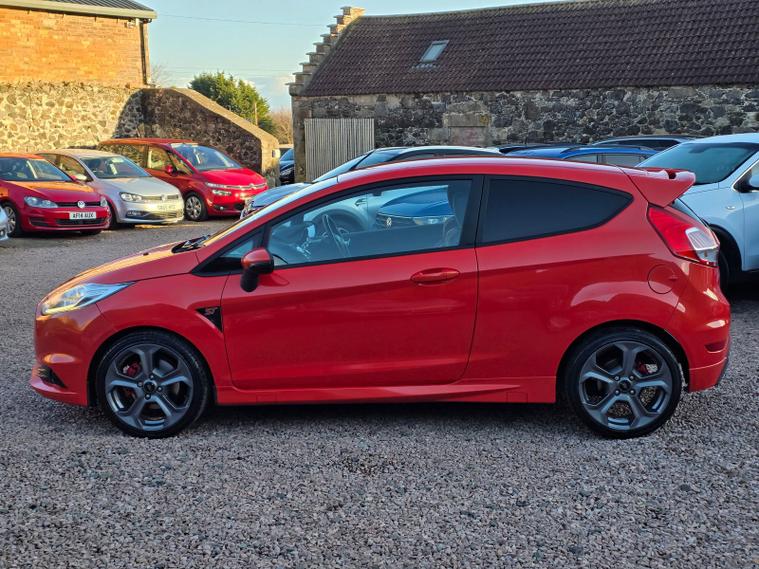 ?180BHP Fiesta ST in special Molten Orange metallic paint? 2016 FORD FIESTA 1.6 ST-2 ➡️£7750 ➡️73, 400 miles ➡️Molten Orange Metallic ?8 stamp service history ?Half leather heated Recaro sports seats ?Turbo charged 180BHP engine with torque vectoring control ?LEZ compliant ?ST sports body styling kit ?ST suspension, heated windscreen, Bluetooth with voice control, LED DRLs, DAB, ambient lighting, 17in alloys, auto headlights and wipers ✅AA Cars Motor Dealer ✅Warranty included with upgrades available ✅Free 12 months AA Breakdown Cover ✅Finance options available ✅Part exchange welcome ?Rely Motors Ltd, Bankhead Buildings, Kinglassie, KY5 0UH ? dealer's website ?01592332302 / 01592332302 ?info dealer's website Specification includes 17in Alloy Wheels - Flash Grey, Ambient Lighting, Bumpers - Front and Rear Body Colour, Centre Console, Courtesy Light - Front with Map Reading Lights, Courtesy Light - Overhead with Theatre-Style Dimming, Courtesy Light - Rear, Door Handles - Body Colour, Door Mirrors - Electrically-operated and Heated - Integrated Side Indicators - Body Colour Housing, ESP - Electronic Stability Programme, Engine Immobiliser - Passive Anti-theft System, First Aid Kit and Warning Traingle Storage, Footwell Lights - Driver and Passenger, Ford Easy Fuel Capless Refuelling System with Misfuel Inhibitor, Ford Power Starter Button, Front Fog Lights - Black Bezel Rings, Glovebox - Illuminated, Halogen Projector Headlights with Silver Surrounds and LED Daytime Running Lights, Headliner - Black Woven, Heated Driver and Passenger Seats, IPS - Intelligent Protection System, Interior Door Lever - Chrome Finish, Leather-Trimmed Handbrake, Loadspace Compartment Light, Manual Air Conditioning, MyKey, Pedals - Sports, Pollen Filter, Rear Privacy Glass, Scuff Plates with ST Logo, Sony CD Radio with DAB and Ford Sync, Suspension - Front Stabiliser Bar, Suspension - ST - Lowered Ride Height, Tailgate Handle - Body Colour, Tailgate Wash-Wipe, Thatcham Alarm, Threshold Plates - Front Stainless Steel with ST Logo, Tyre Pressure Monitoring System, Unique ST Full Bodystyling Kit with Large Spoiler, Unique ST Leather Gearshift Knob, Wipers - Front Variable Intermittent