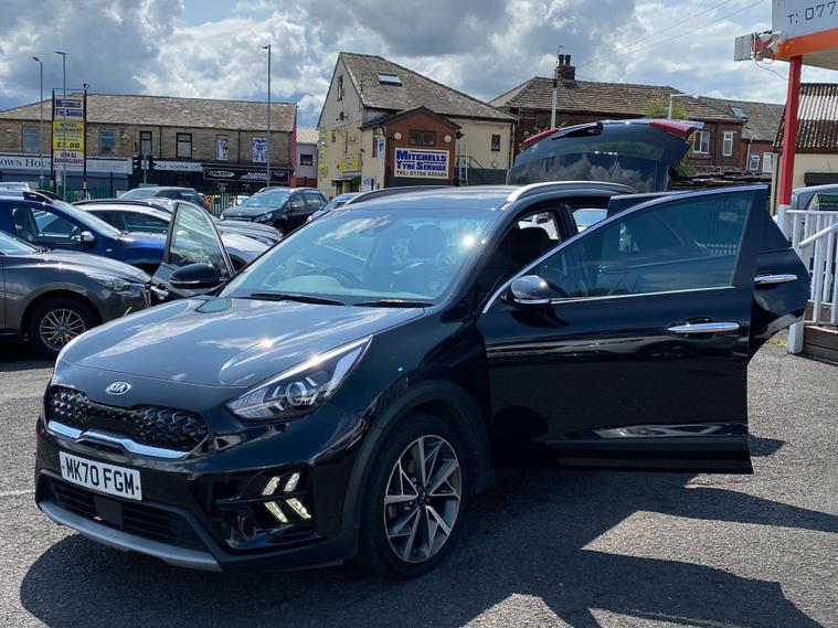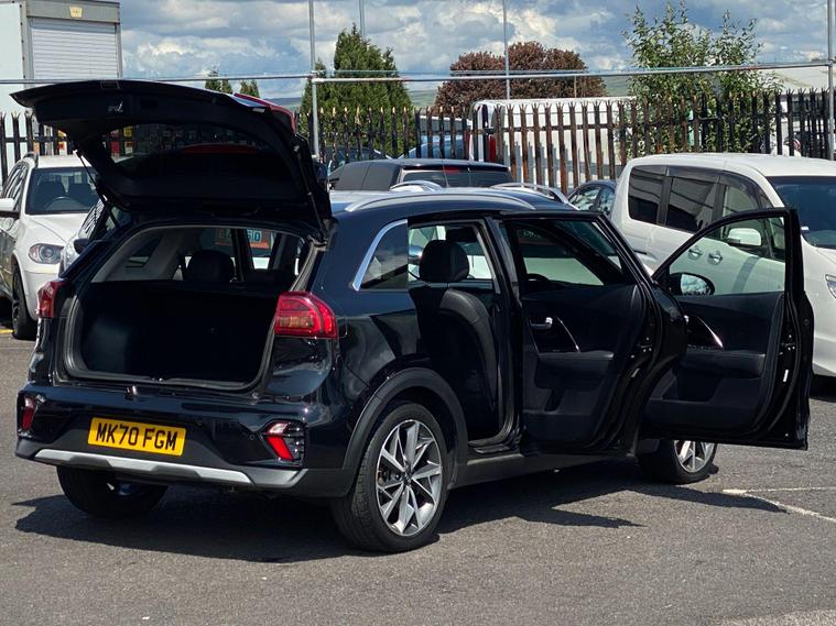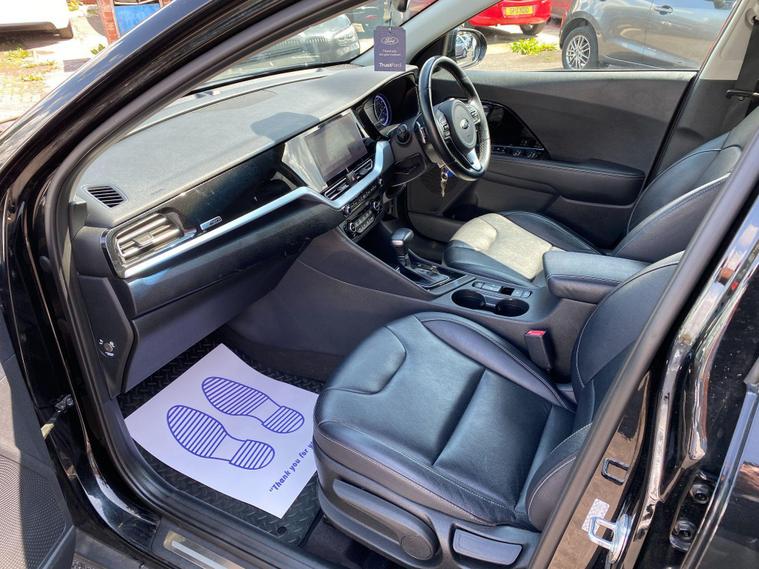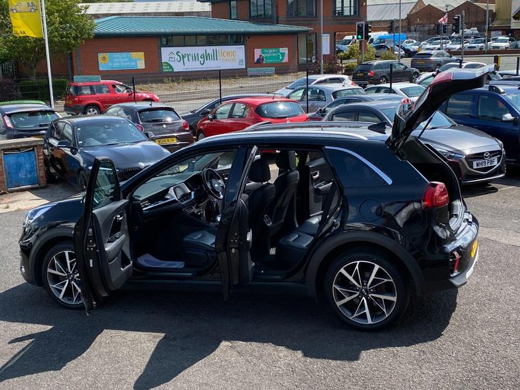 Here we have a fine example of a KIA Niro 1.6 GDi 3 DCT Euro 6 (s/s) 5dr, ONE LADY OWNER FROM NEW, GREAT SPEC, LONG MOT and FULL SERVICE HISTORY. AS PART OF THE AA GROUP WE OFFER 12 MONTHS FREE AA BREAKDOWN COVER WITH EVERY CAR SOLD & 5 DAYS DRIVEAWAY INSURANCE AVAILABLE (T&C's apply) (UNFORTUNATELY THIS CAR HAS BEEN ACCIDENT DAMAGED REPAIRED (CAT S *COSMETIC DAMAGE* REAR ONLY!!!!!) USED AS CAR PERSONALLY BY THE DIRECTOR. ALL PICTURES OF DAMAGE ARE AVAILABLE UPON REQUEST. KEY FEATURES: Cruise Control, Parking Sensors (Front & Rear), Heated Seats, Reverse Camera, Wireless Phone Charging, Leather Upholstery, Electric Seats, Hand Controls, Auto Dim rear view Mirror, Bluetooth, Rain Sensors, ISOFIX, Quick Clear Screen (Rear), Air Condition, Front & Rear Armrest, Front & Rear Electric Windows, Electric, Folding & Heated Door Mirrors, Cup Holders, USB & AUX Features and more. SERVICE HISTORY: PDI STAMPED/INVOICES @ (MILES). MOT CHECKS @ Miles. NEXT MOT DUE (NO ADVISORIES). LAST SERVICED @ Miles. ALL DEBIT AND CREDIT CARD PAYMENTS ACCEPTED. PART EXCHANGE ALWAYS WELCOME. EVENING VIEWINGS AVAILABLE ON REQUEST. OPEN 7 DAYS A WEEK, VISIT dealer's website WITH OVER 100 CARS IN STOCK.